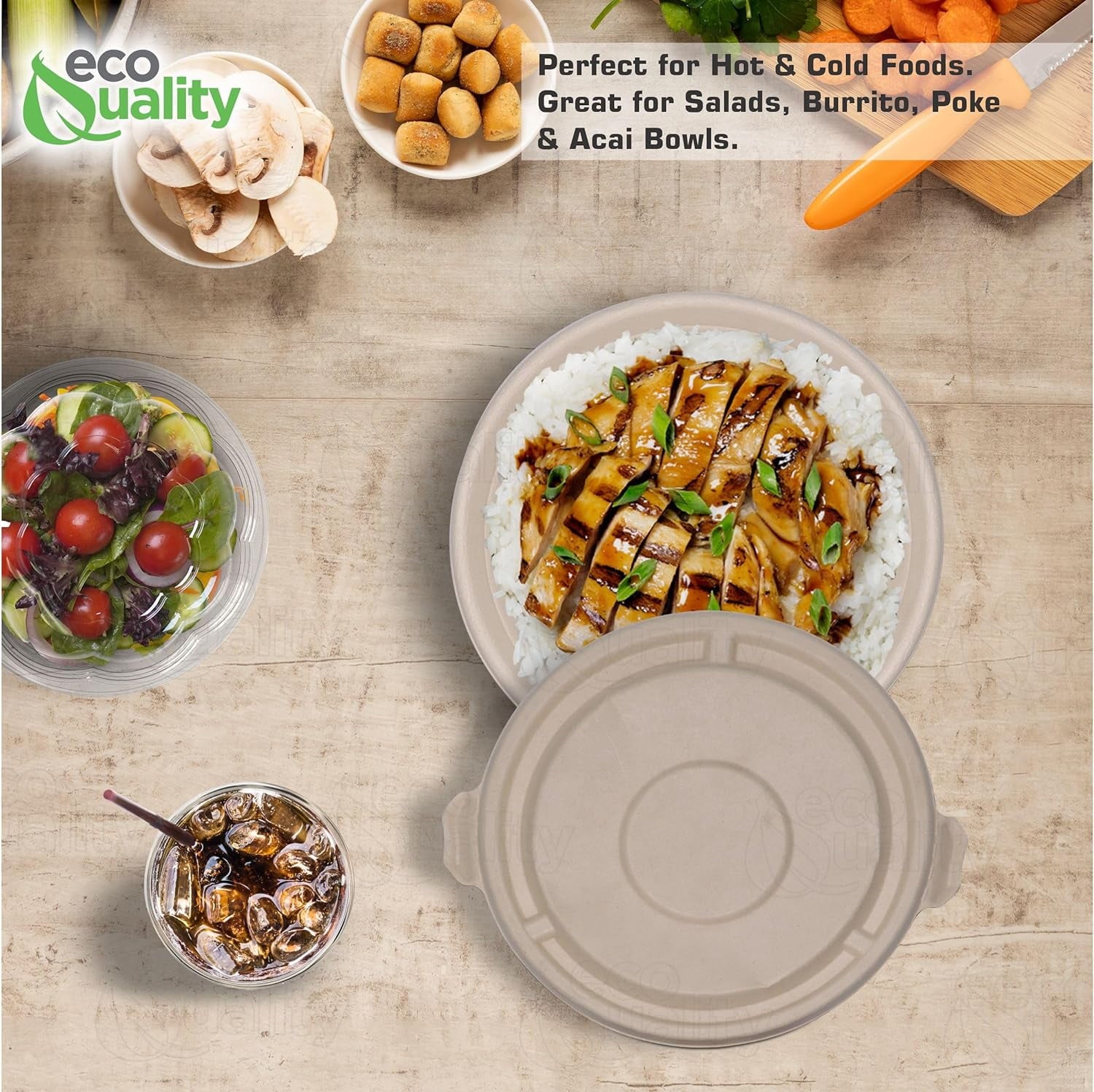 - GREAT FOR HOT AND COLD USES: These bowls can be used for hot and cold food items. From Soups Bowls, Cereal Bowls, Salad Bowls, Meal Prep Bowls, Acai, Oatmeal, Porrage, and much more! They offer a more reliable sturdiness and strength than paper and plastic bowls without wax lining or plastic byproduct. Comes with a raised sugarcane fiber dome lid design which makes for easy travel, to go orders, takeout, and delivery!