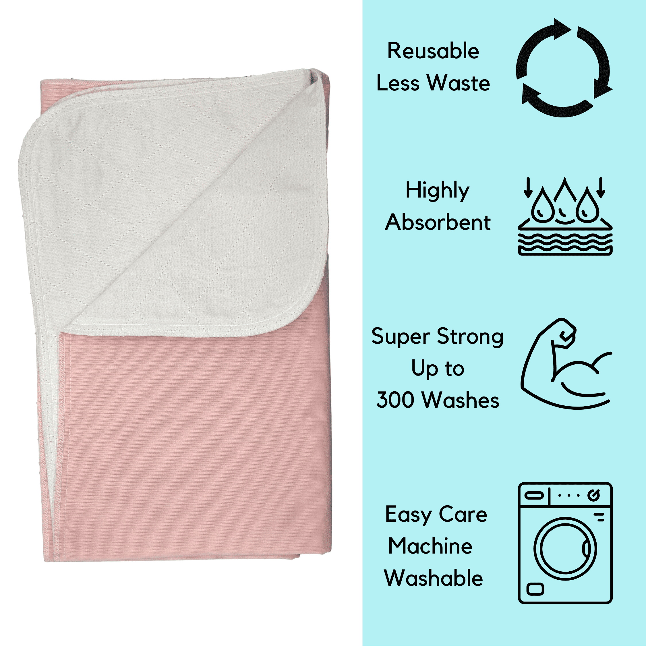 - REUSABLE PAD: Machine Washable – Vinyl coated knit barrier withstands heavy demands of multiple washing and drying cycles. Do not iron or use fabric softeners.