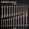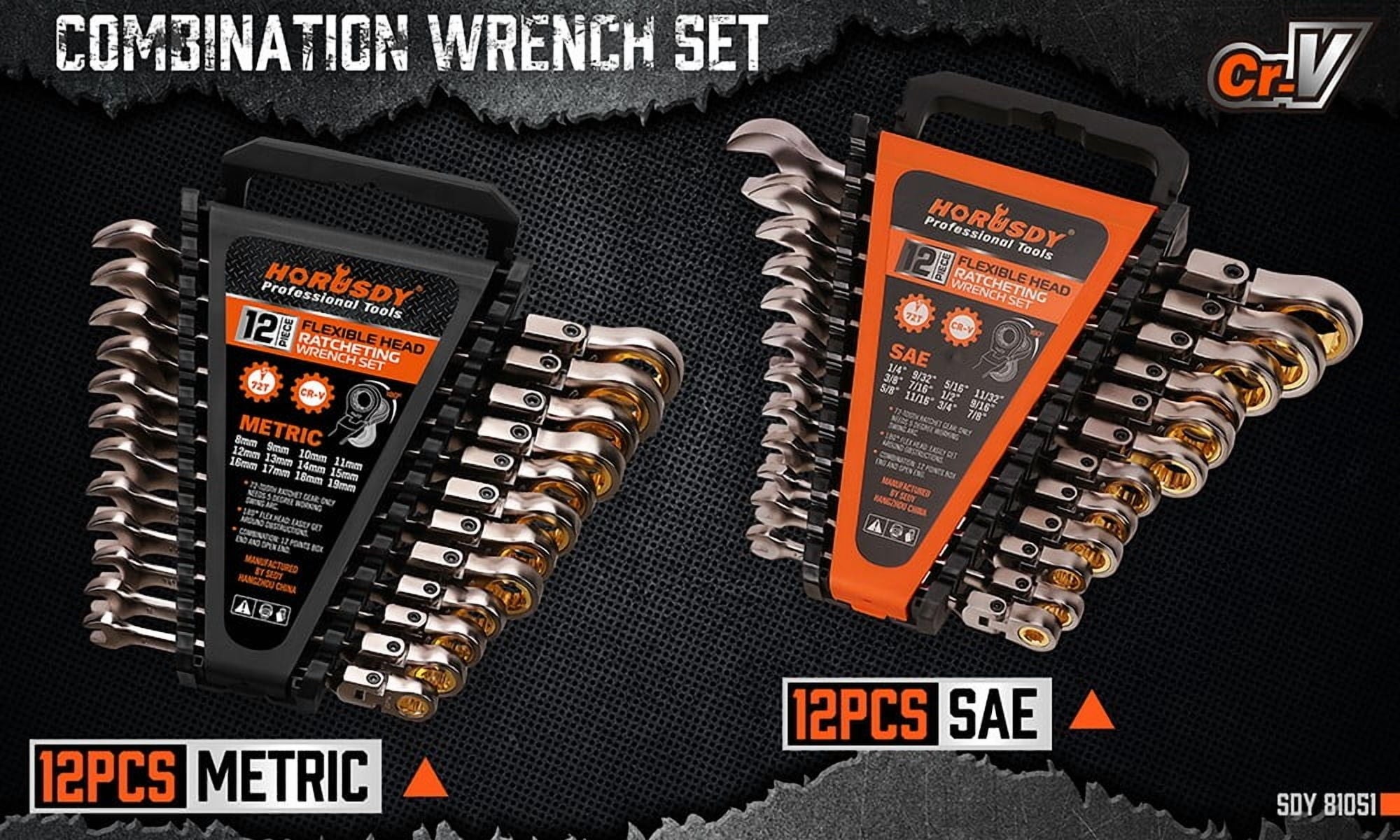 Home Wrenches 24PC Flex-Head Ratcheting Wrench Set Metric & SAE w/ Organizer 8-19mm 1/4″-7/8″