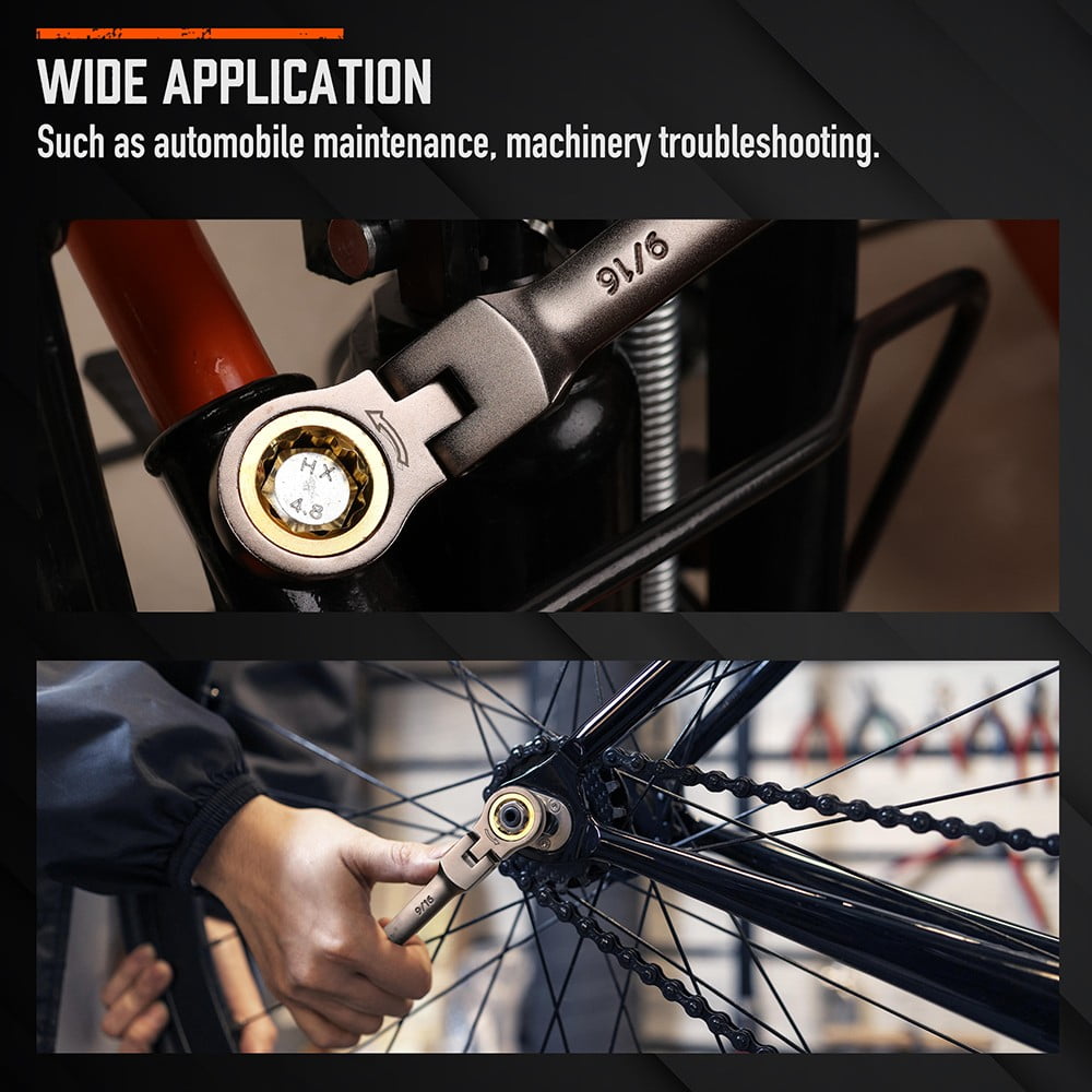 Flex-Head Wrench is Made of High-Strength Chrome-Vanadium Steel Construction to Ensure Durability and nickel plated for durability, these wrenches will deliver years of consistent performance.