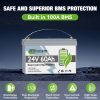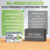 • 【60A BMS Protection】 24V 60Ah LiFePO4 battery built-in upgarded 60A BMS to protect battery from overcharge, over-discharge, over-current, and short circuit with excellent self-discharge rate. Built-in high-temp/low-temp cut off prevents charging/ discharging When the temperature reaches a certain threshold value.