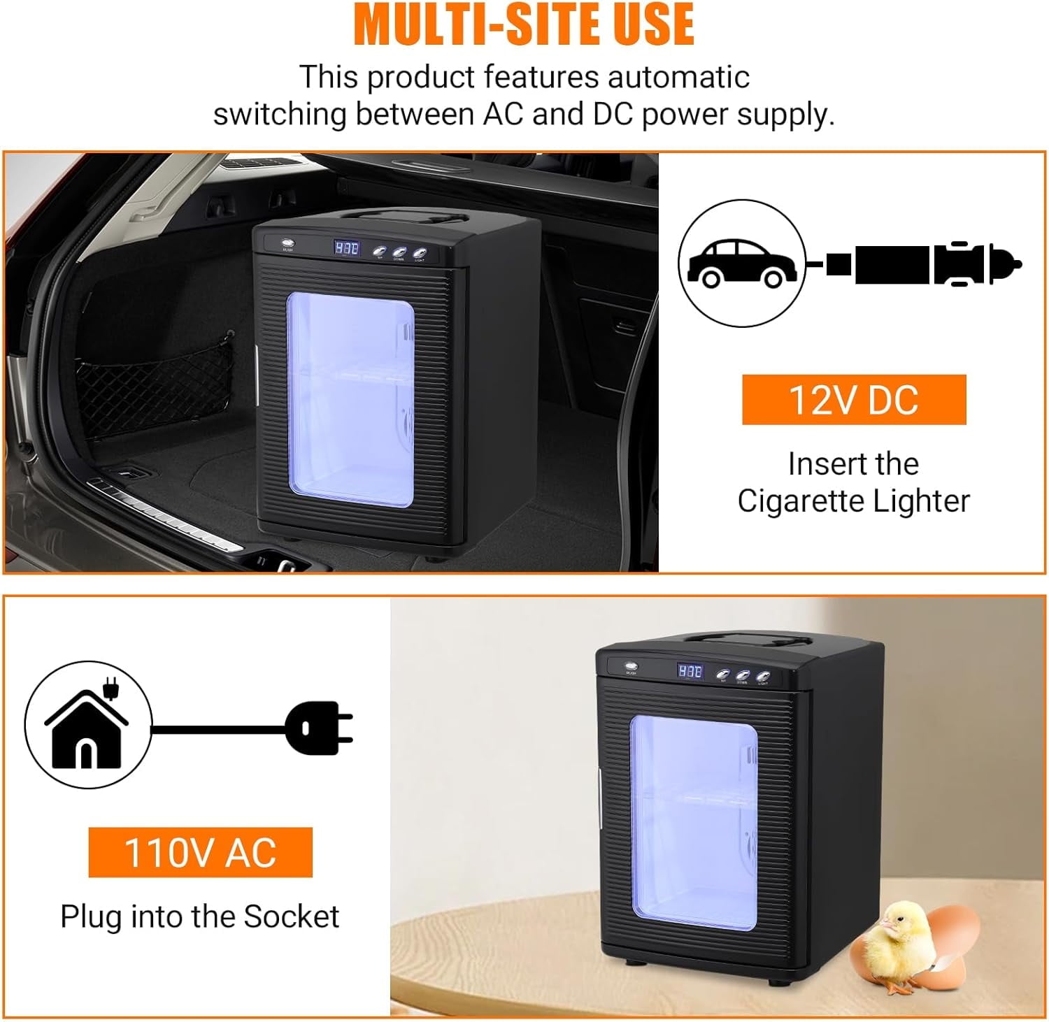 - AC&DC : Configured with AC and DC cables, AC can be used directly indoors and DC can be carried in the car for use when out of the house, a combination of the two methods avoids power outages affecting incubation.