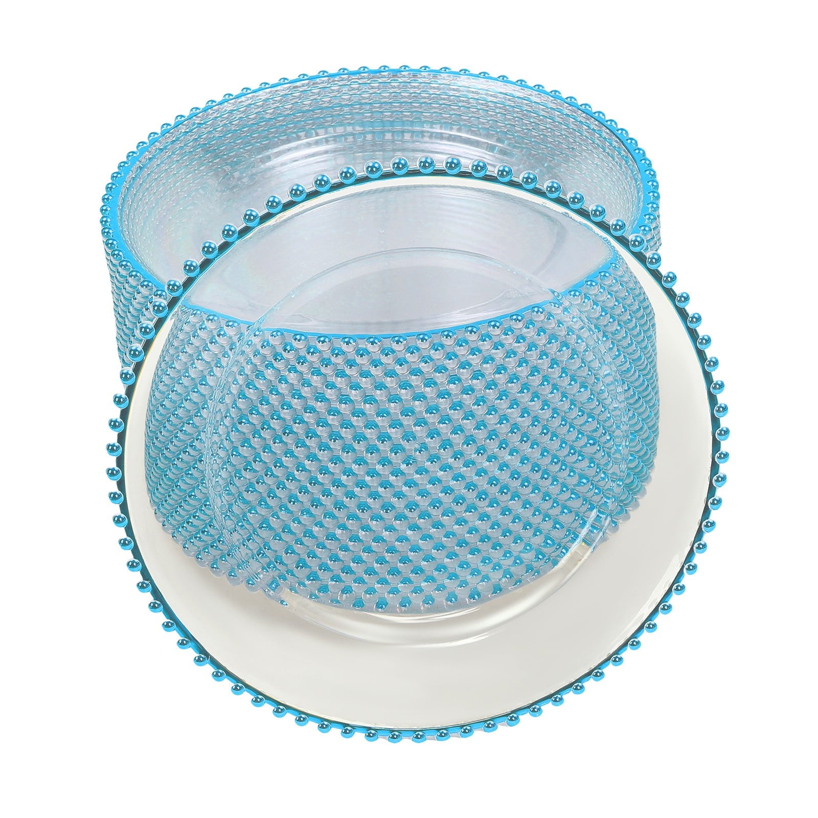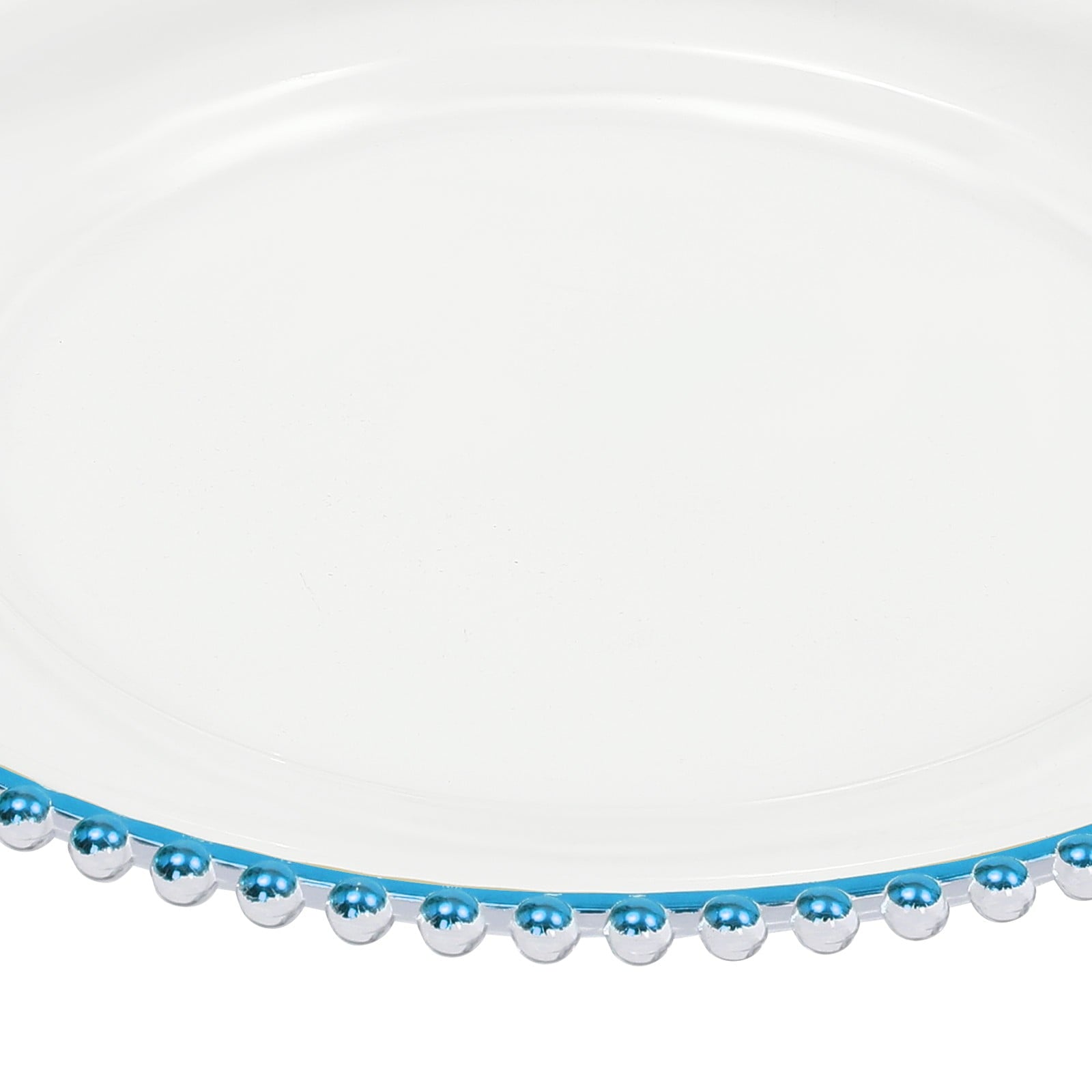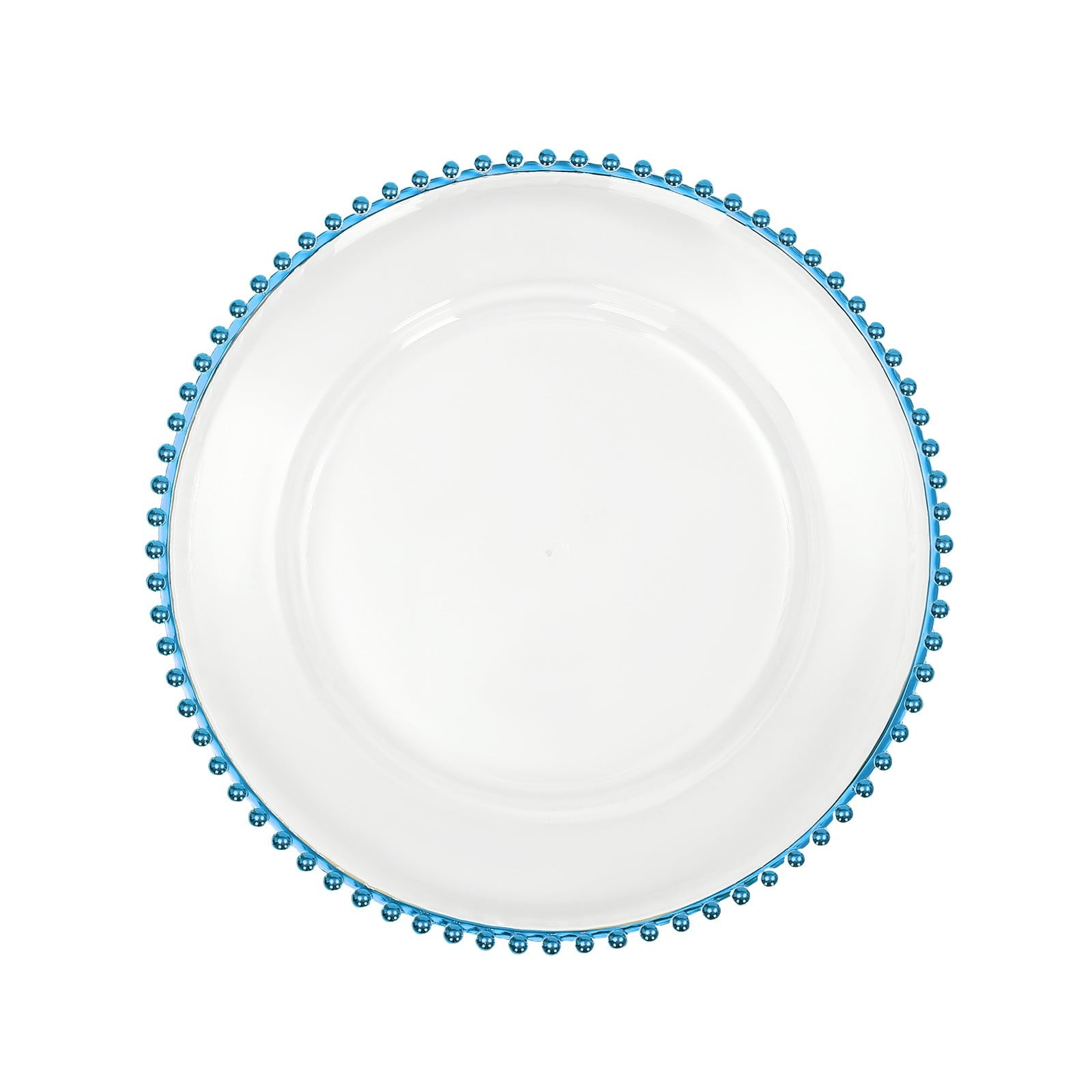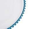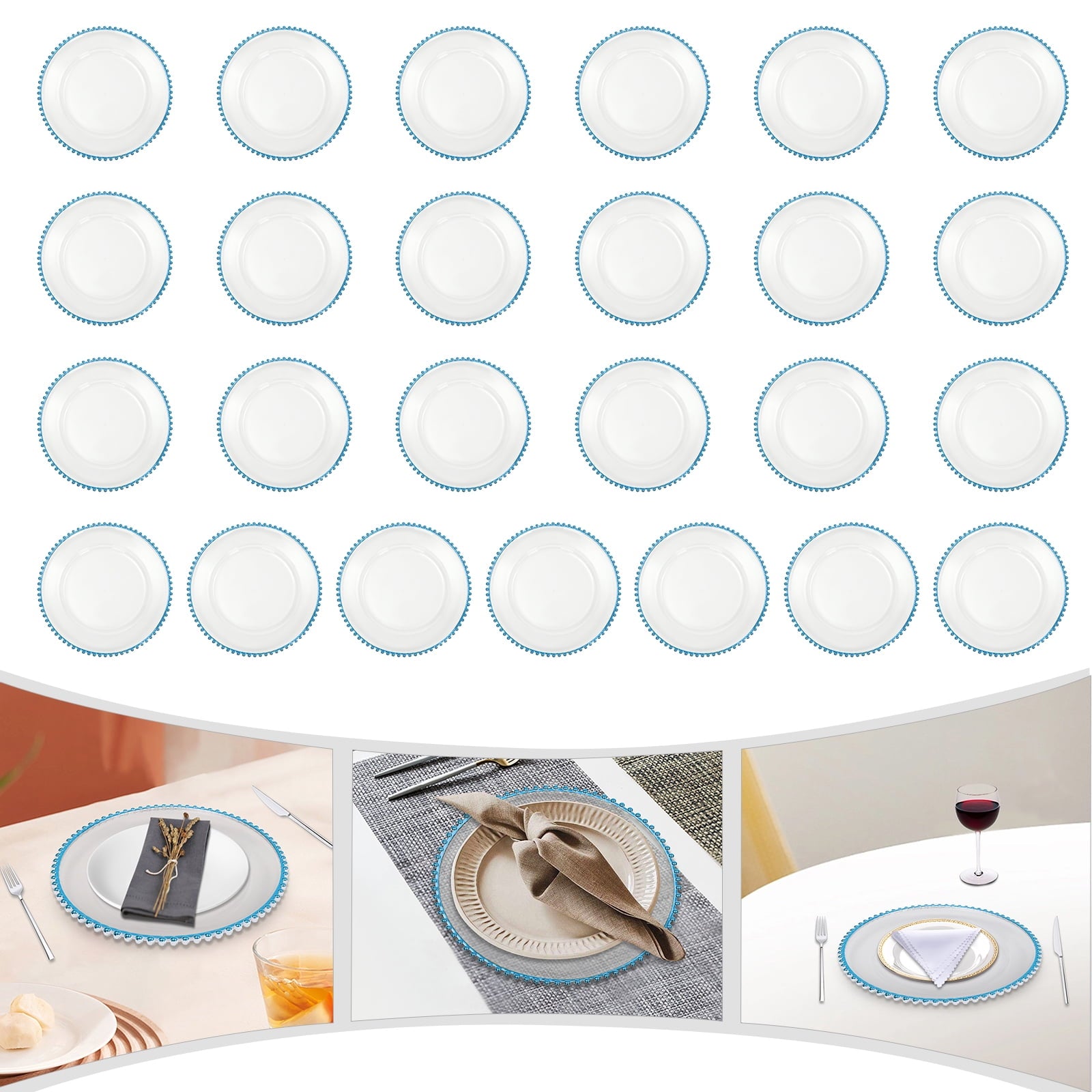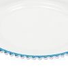 25 Pcs 12.6 Inch Clear Charger Plates, Plastic Dinner Charger Plates with Blue Beaded Rim for Home Wedding Birthday Bridal Shower Kitchen Party Dinner Table Decor Supplies (Clear, Blue)