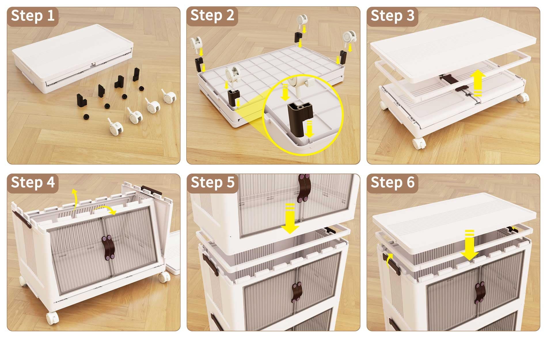- 【Instant istallation by instructon】Foldable storage cabinet required no tools installation,only takes about 18s to assemble. Grooves on the top and bottom,help you stack them securely.After folding,they don’t take up much space at all.(The box is enclosed with the installation instruction) See more product details