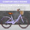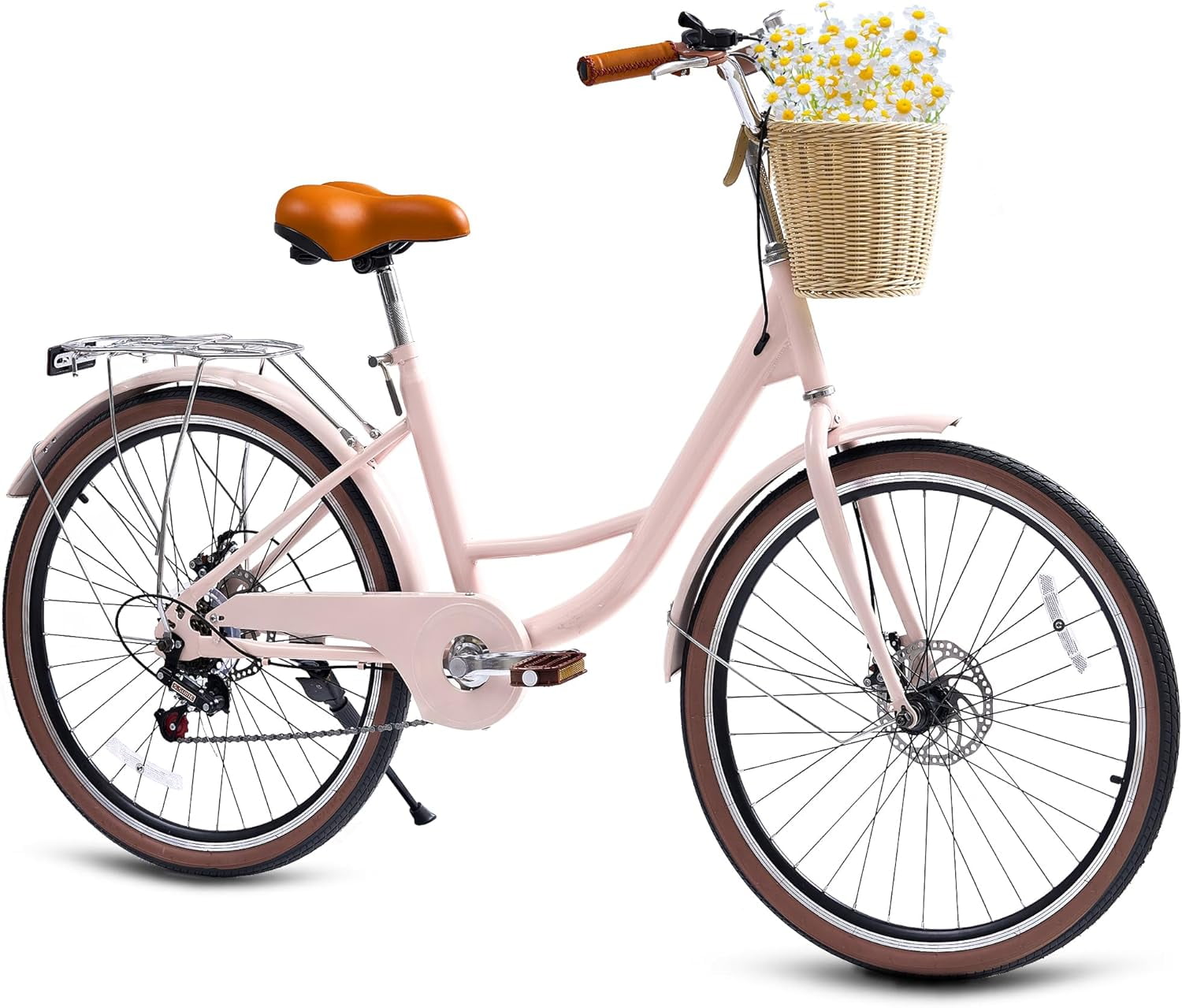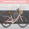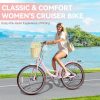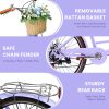 26" Beach Cruisers for Women, Pipleo Bikes for Women with Rattan Basket, 7-Speed & Step-Through Frame