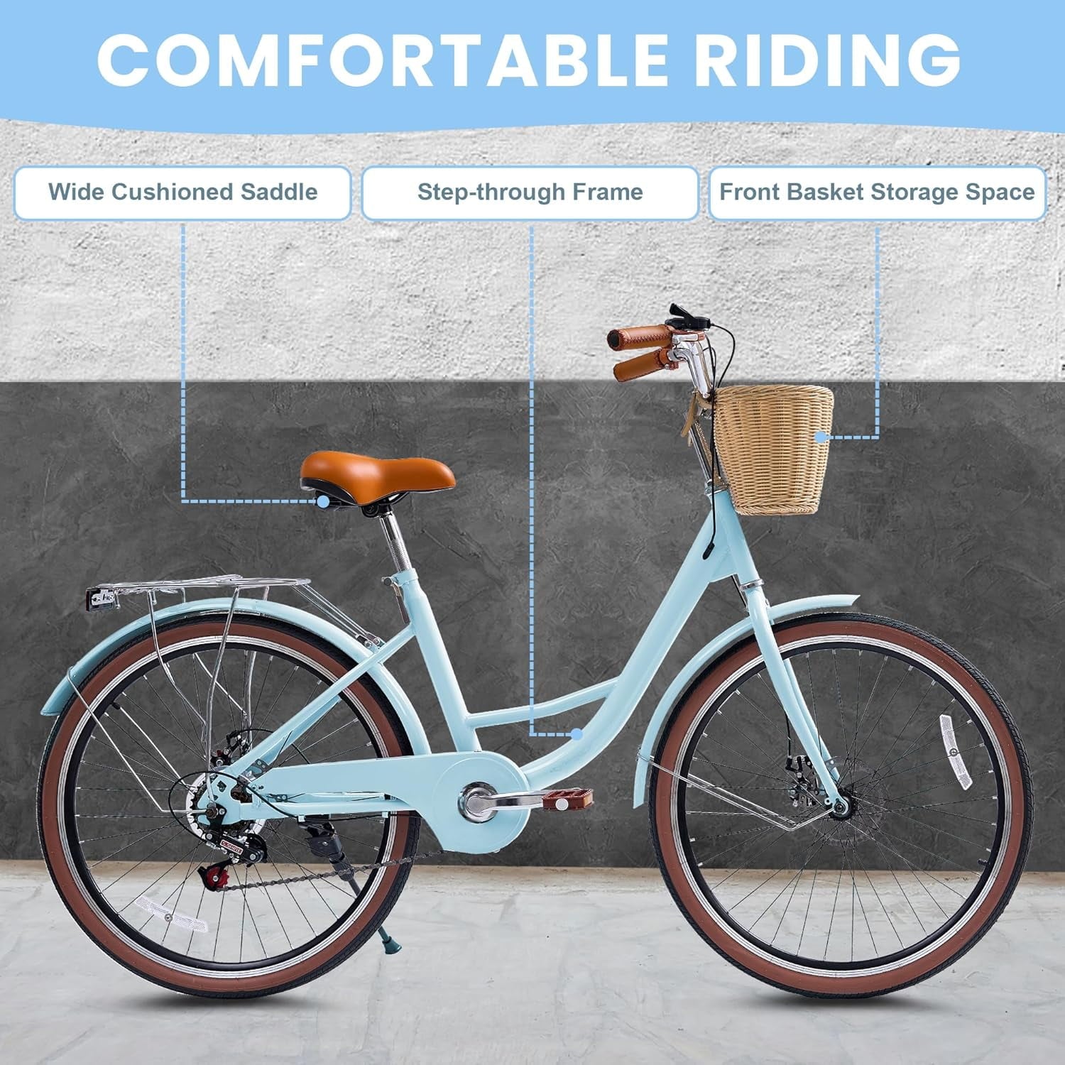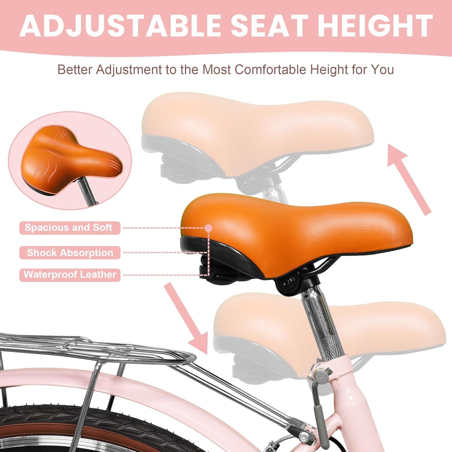 • COMFORT BIKES FOR WOMEN: Upright ergonomic posture reduces fatigue + adjustable waterproof leather seat for all-day comfort.