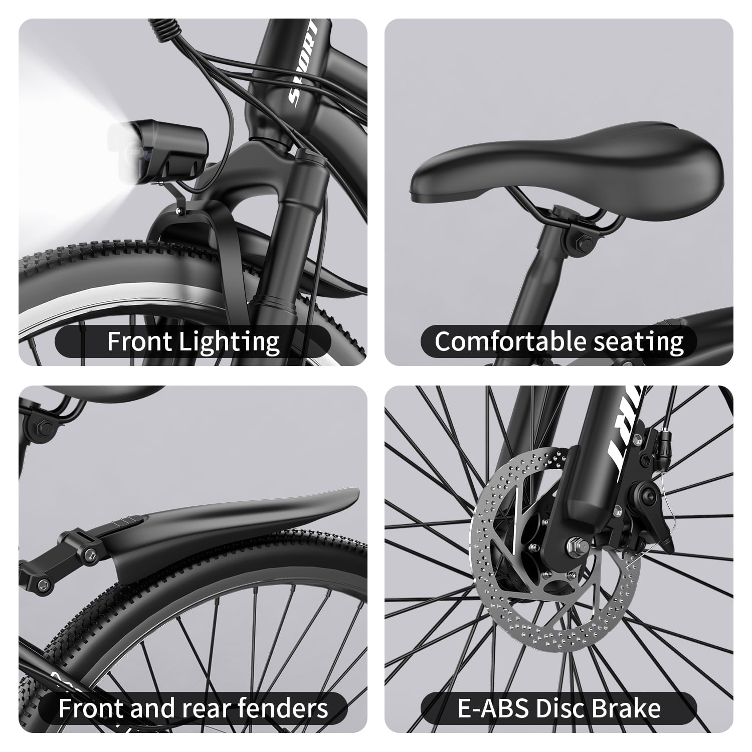 • 🚴‍♀‌‌【Easy Assemble & Reliable Material】G26 e-bikes for adults made of light weight frame and high-quality carbon steel material, more sturdy and durable. High-Intensity front fork suspension provide you a more ease and comfortable riding.This electric mountain bike is 90% pre-assembled with instructions and tools included.You also can contact us for an installation video.