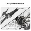 - 【21 Speed Drivetrain】The 21-speed drivetrain allows the rider to switch gears smoothly without stalling. Whether you are climbing mountains, cruising on flat surfaces, or tackling rough roads, this gear range provides the perfect balance of speed and control.