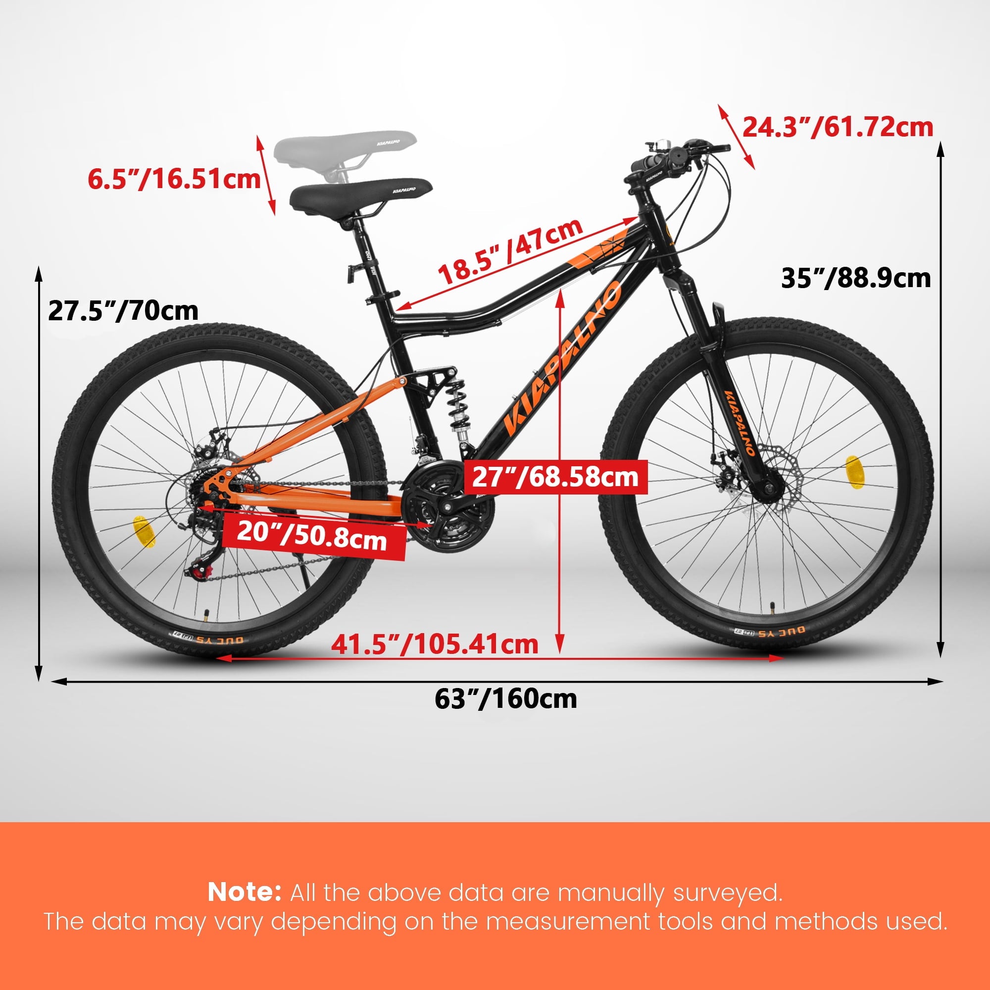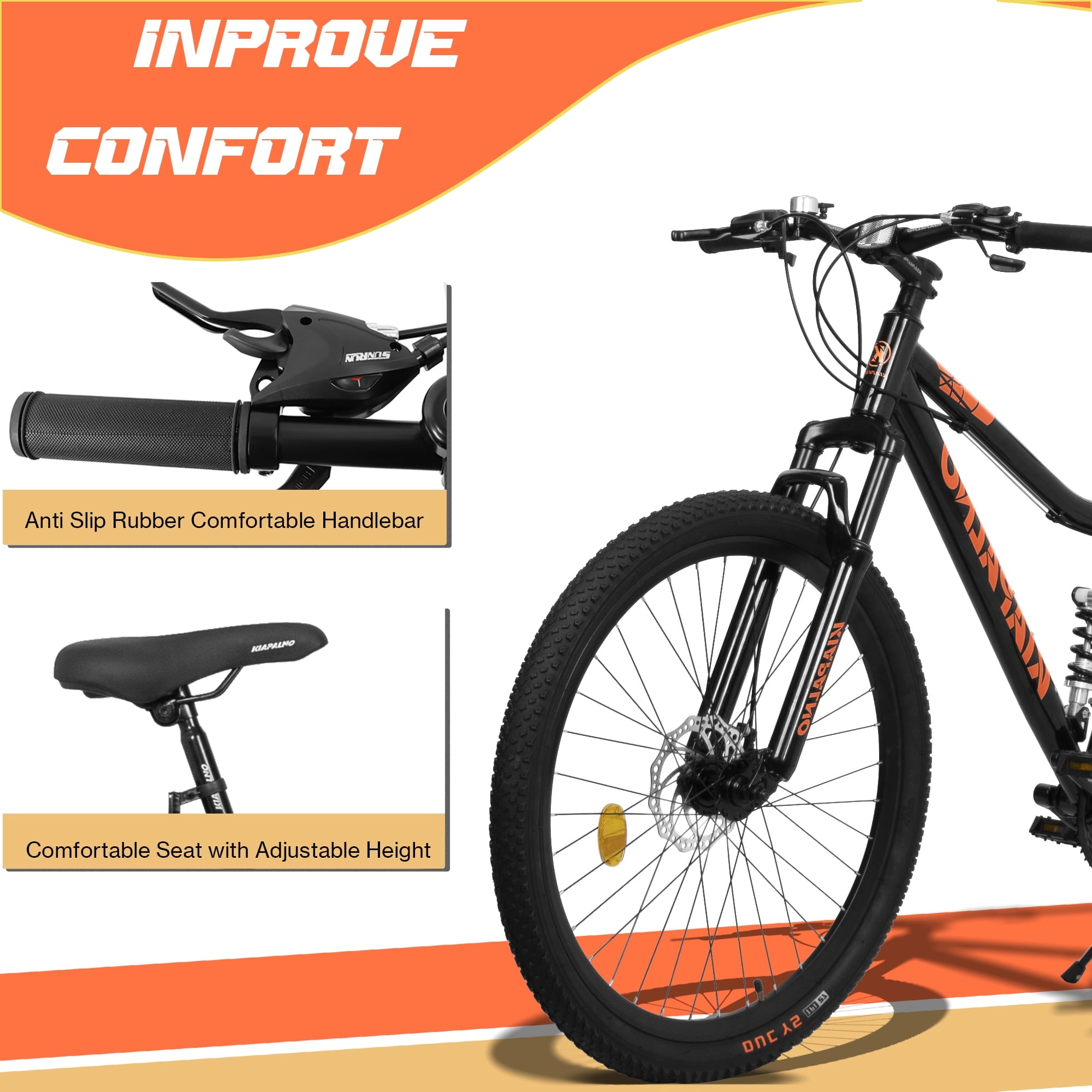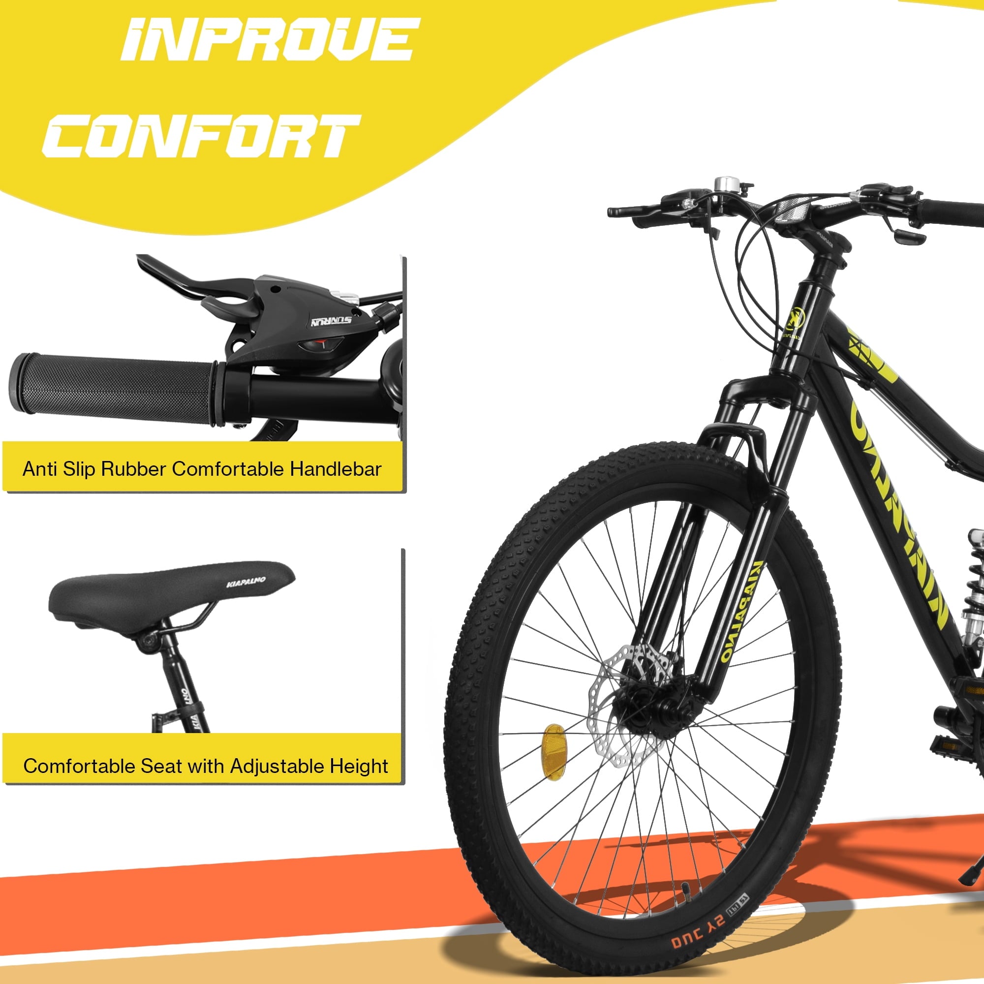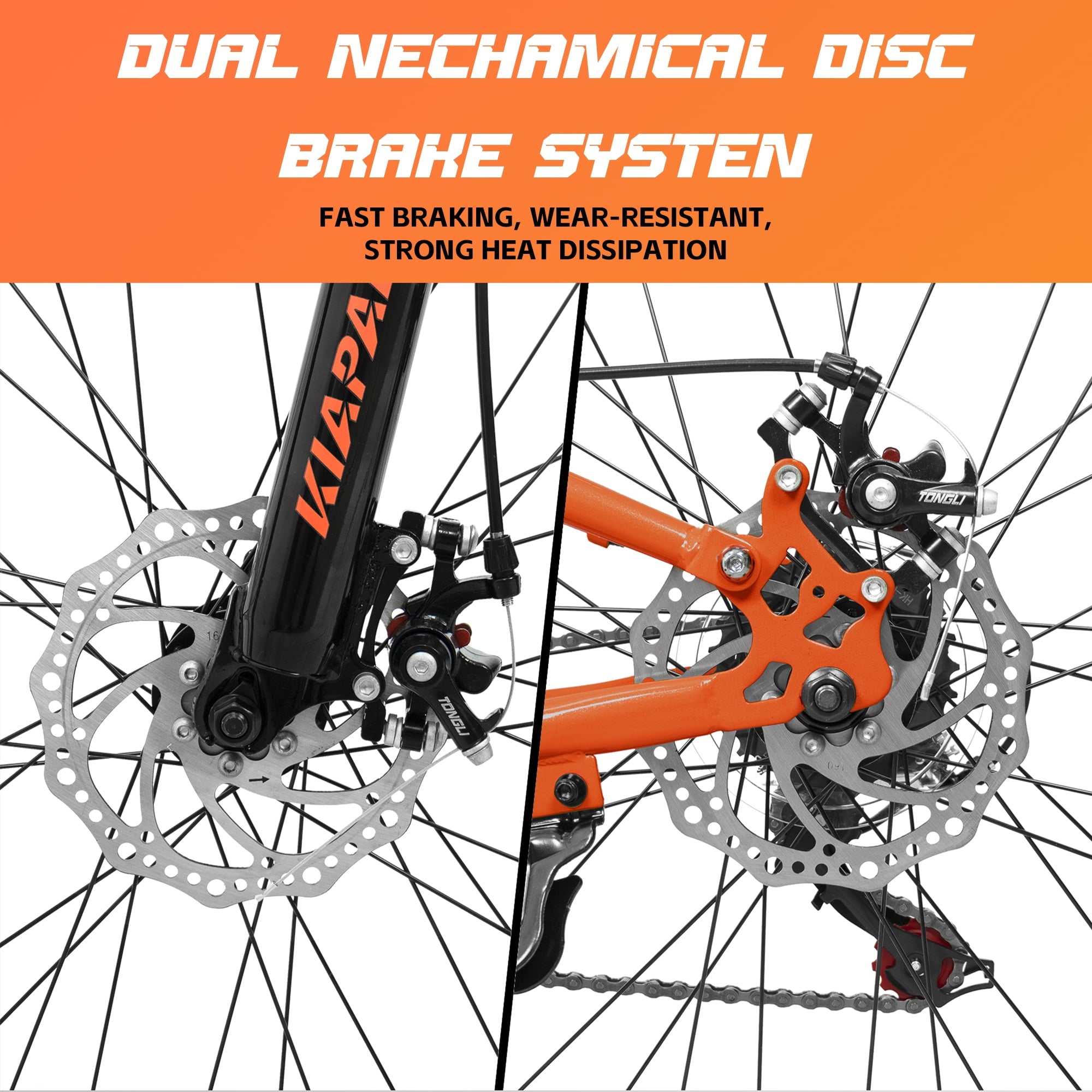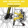 - [Quick and Easy Assembly with Double Disc Brakes] It comes 85% assembled, along with free pedals and assembly tools, allowing you to set it up in less than 20 minutes. Furthermore, the bike is equipped with front and rear double disc brakes, which provide precise and reliable stopping power. Whether you need to make a sudden stop or control your speed on steep descents, these brakes ensure your safety and give you full control over your bike.