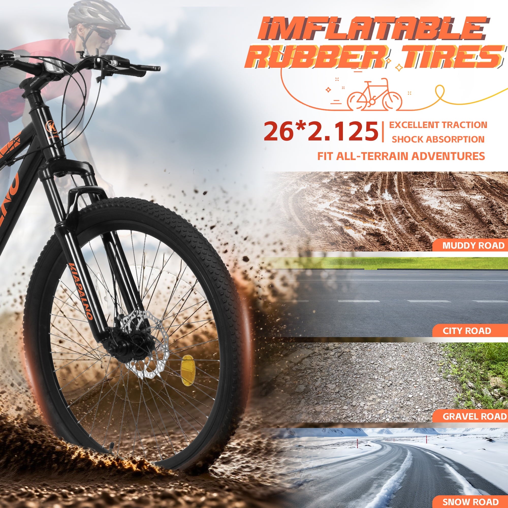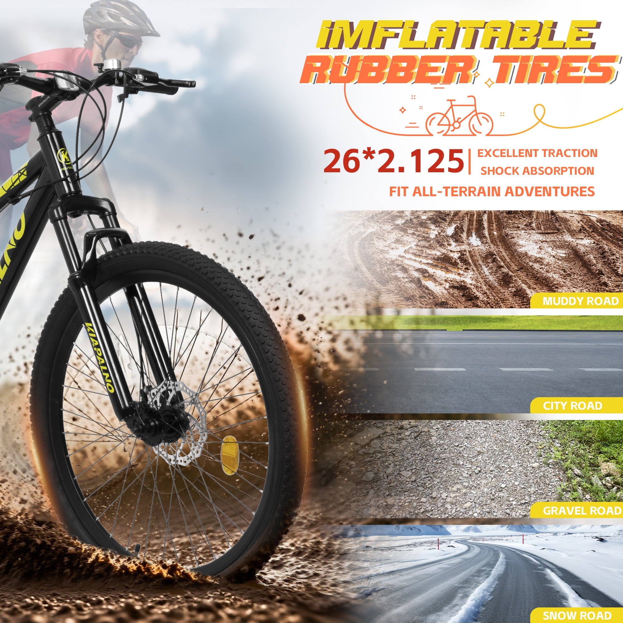 - [High – Performance Anti – Slip Tires] The 26*2.12 – inch anti – slip rubber tires are a game – changer for this mountain bike. Their large size and special tread pattern offer excellent traction on various surfaces, including mud, gravel, and loose soil. This ensures stability and control, even in the most challenging mountain and jungle environments. Additionally, these tires are highly durable and have puncture resistance, reducing the risk of flat tires during your rides.