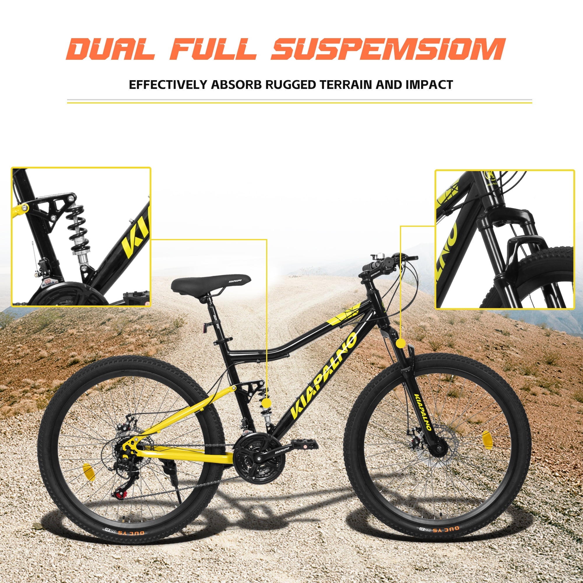 - [Full Suspension] We understand the importance of comfort and safety during off – road adventures. That’s why our bike is designed with a thickened vibration – absorbing fork and a telescopic cushion. These components work in harmony to absorb shocks from bumps, rocks, and other obstacles on the trail. By minimizing the impact on your arms and body, they enhance the bike’s overall performance and stability.