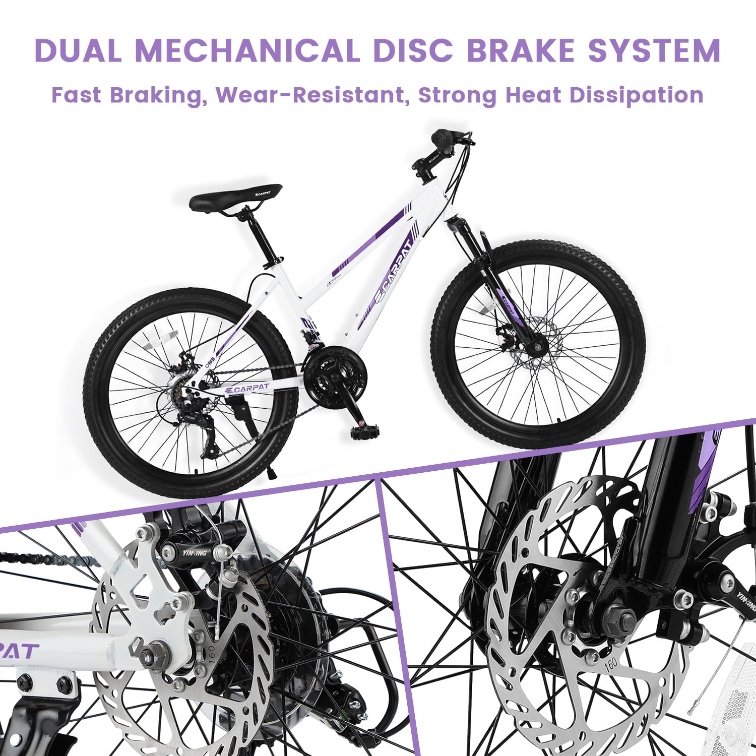 - [Dual Disc Brakes for Superior Stopping Power] Safety is a top priority, and this bike delivers with its dual disc brake system. These brakes provide exceptional stopping power, even in wet or slippery conditions. Whether you need to make a sudden stop to avoid an obstacle or simply want to slow down gradually, the dual disc brakes offer responsive and reliable braking performance.