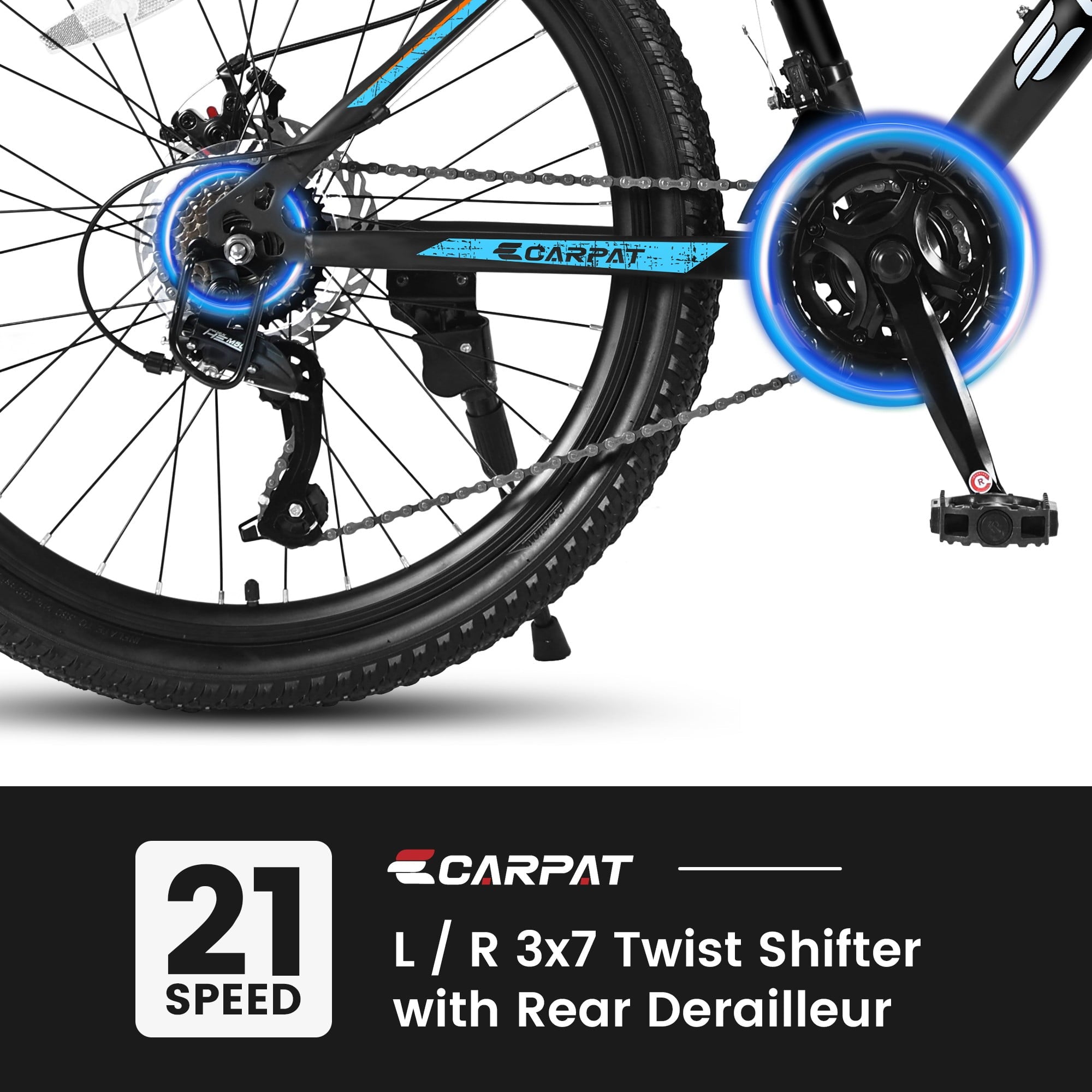 • [Excellent transmission]- The Mountain Bike has a Shimano shift handle with the Classic 21 speeds. The front and rear derailleurs allow you to quickly and smoothly change gears to suit a variety of terrains.