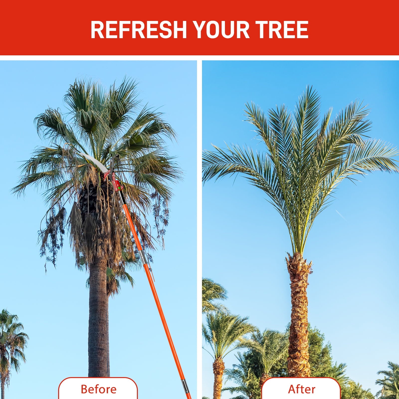 5. Versatile Application: Designed for a wide range of uses, from palm trees to fir trees and everything in between, this pole saw is your go-to tool for maintaining a variety of tall trees and shrubs, ensuring your garden stays beautifully manicured with ease.