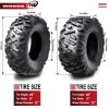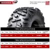 Full set (2 front 26×9-12 & 2 rear 26×11-12) tires fit for 12-17 Kawasaki Teryx4 Base/LE/Camo 750 4X4. The tires have top notch handling in all terrains-dirt, mud or rocks, with superior traction in the woods and great in the desert. Additional shoulder lugs protect rim and sidewall. Heavy 6 ply rated construction resists punctures and abrasions. 36% deeper tread than major competitor with similar tread patterns, result as heavier, longer lifetime, and more aggressive. Tires only, wheels are not included.
