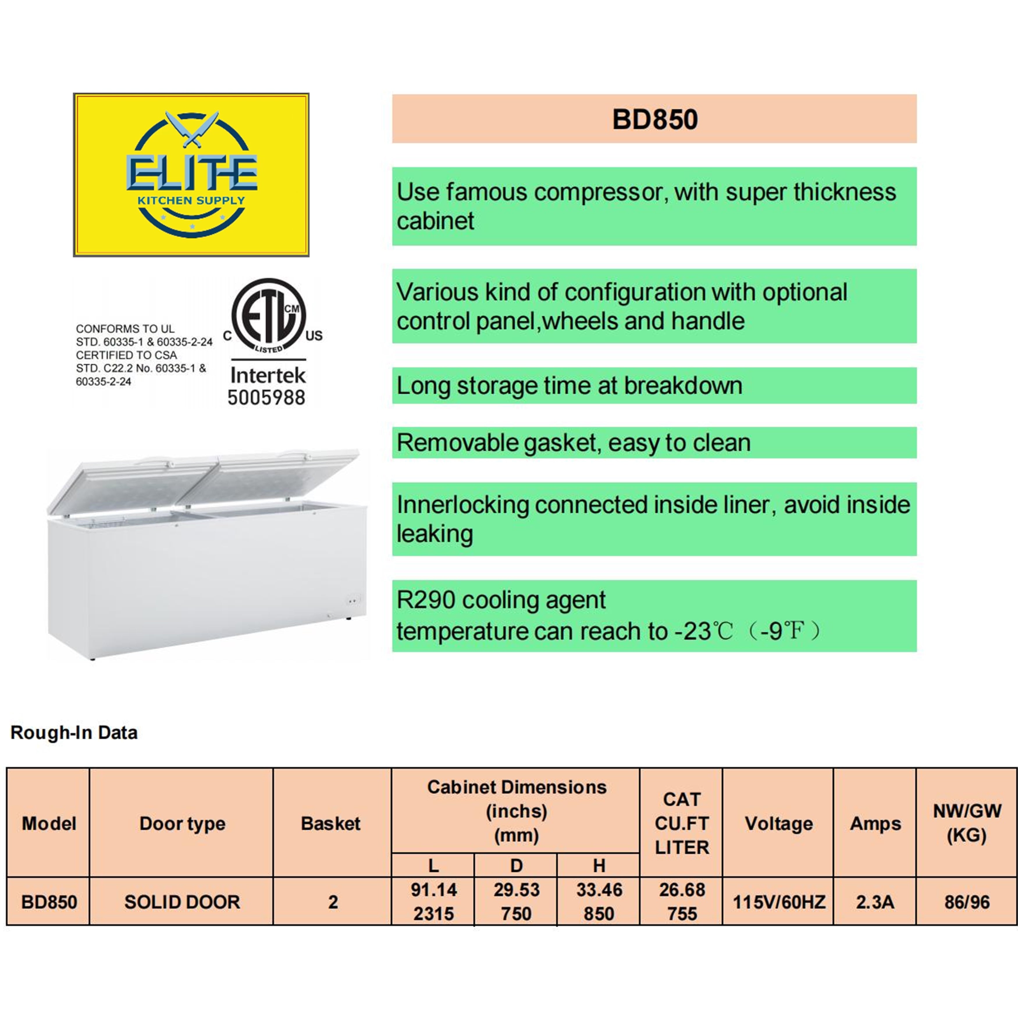 27 Cu.Ft. Chest Freezer 91 in. with Two Solid Open Doors, NSF Certified