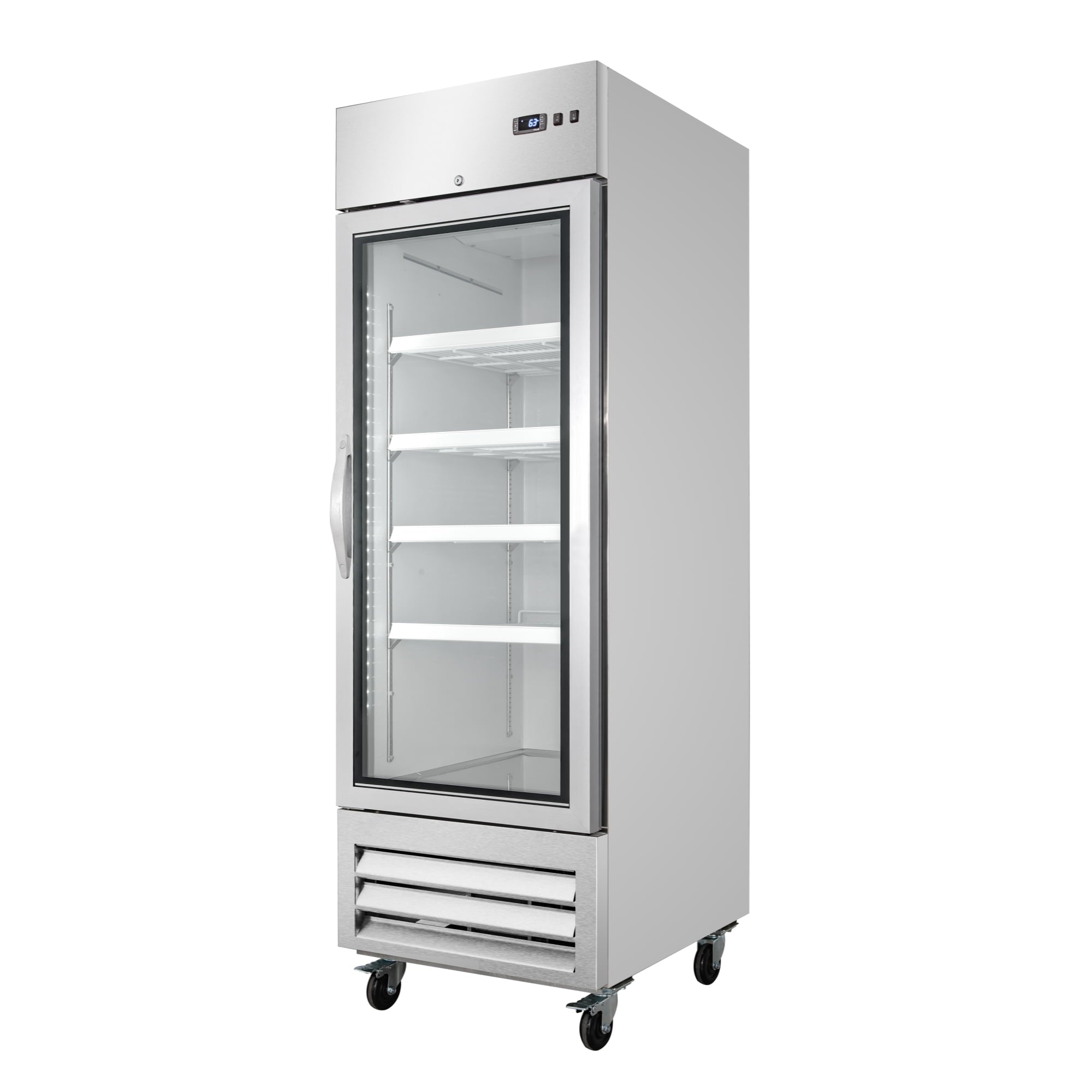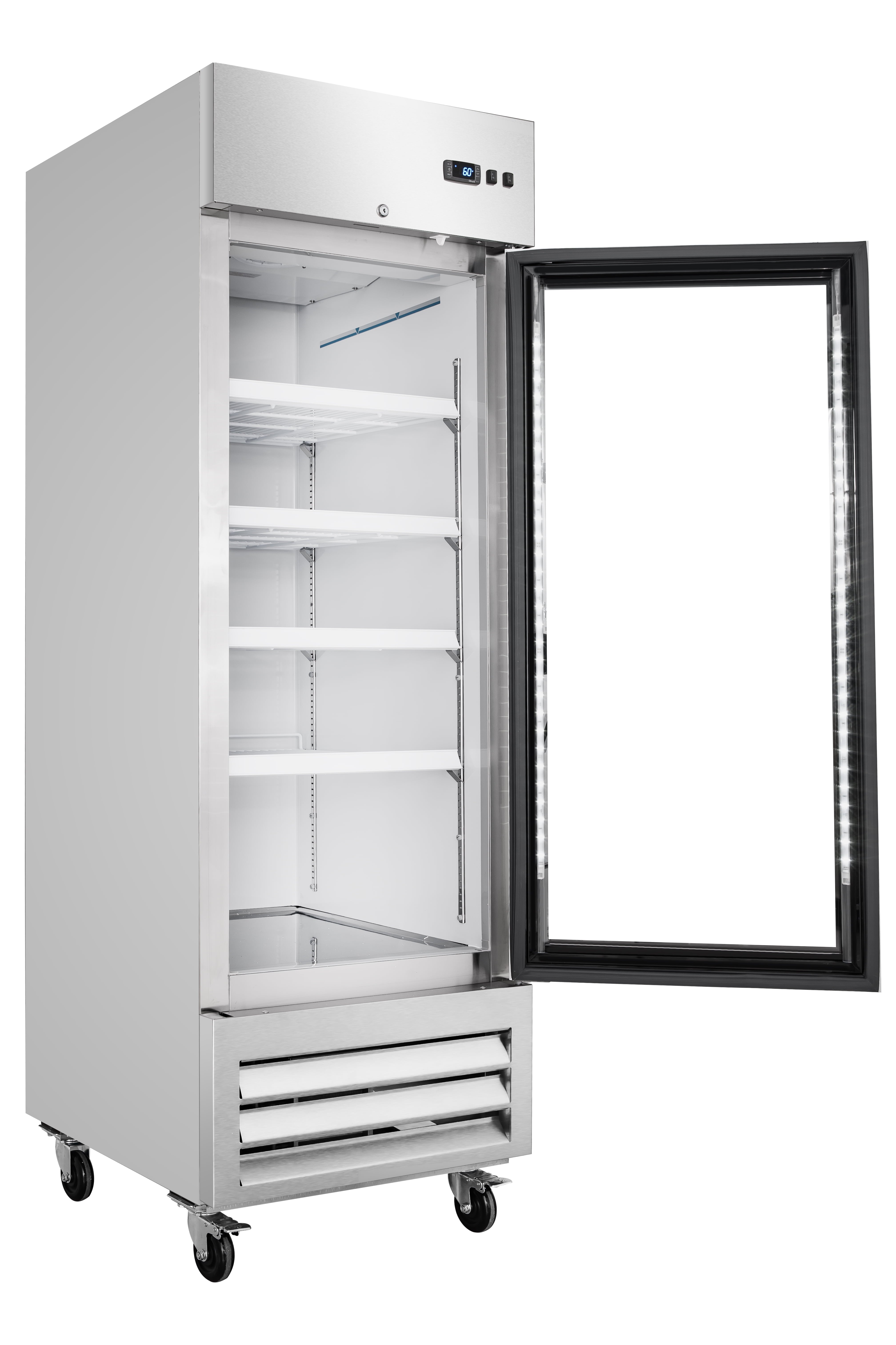 Digital temperature display for precise monitoring.27 in. Commercial One Glass Door Convertible Reach-In Refrigerator/Freezer with 23 Cu. Ft. Capacity in Stainless Steel, ETL Listed (KM-RIC-1DGD)