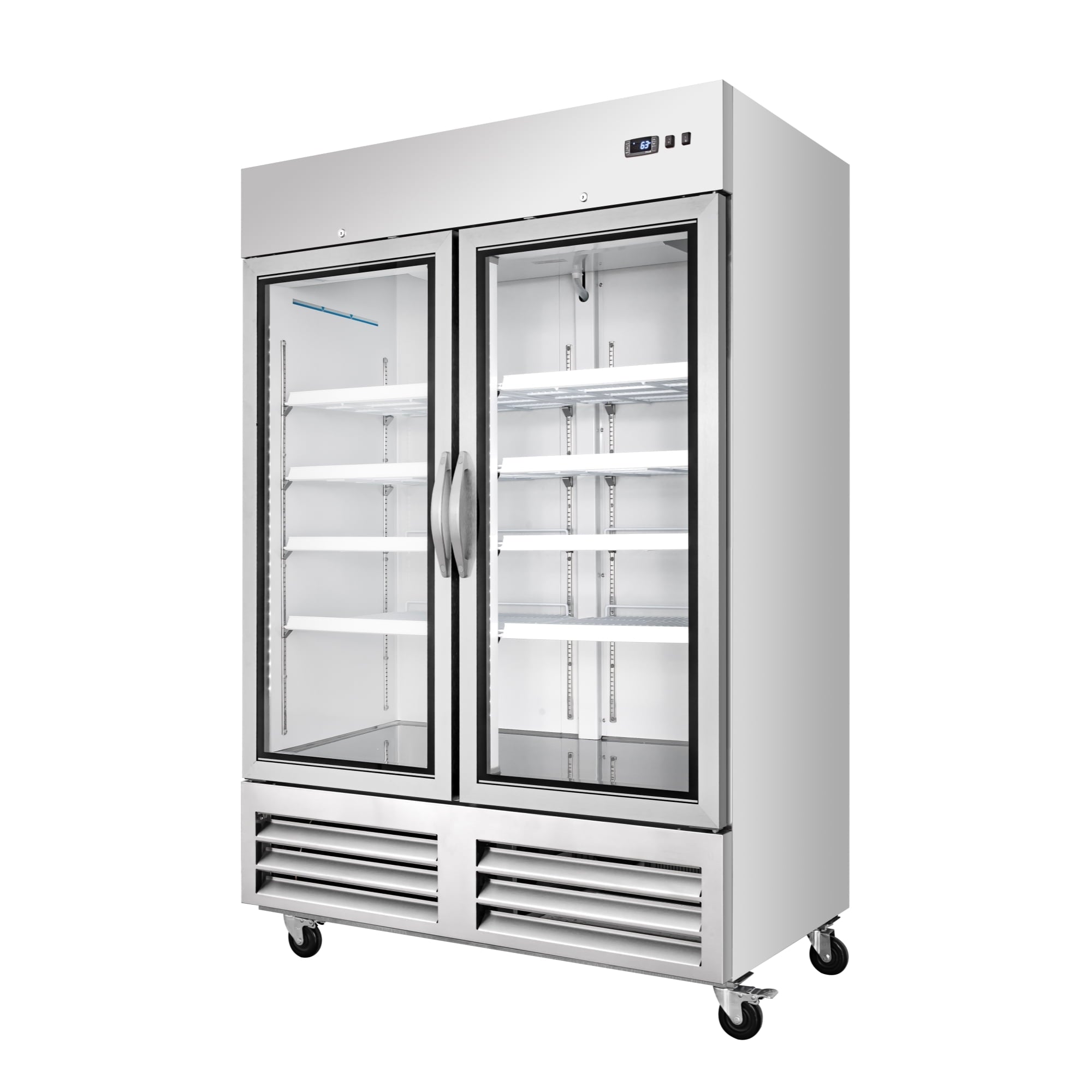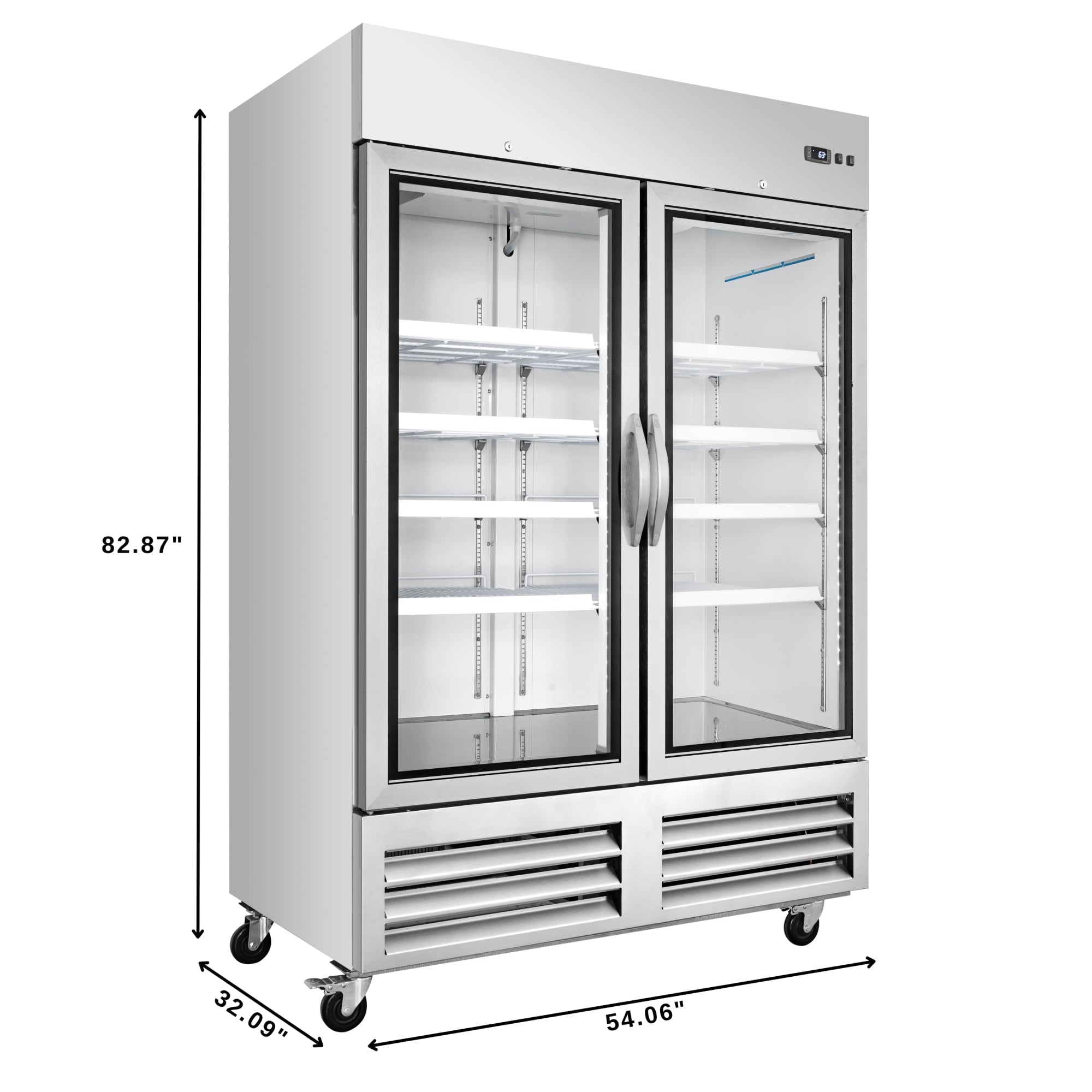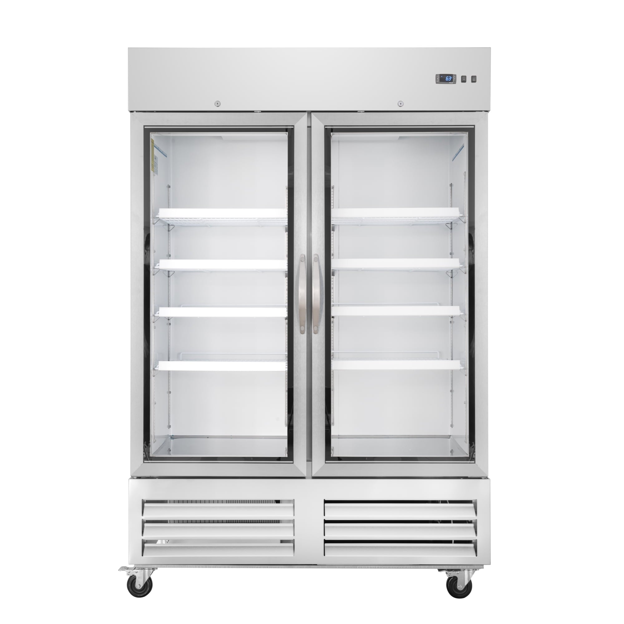 Glass door provides clear visibility of contents.