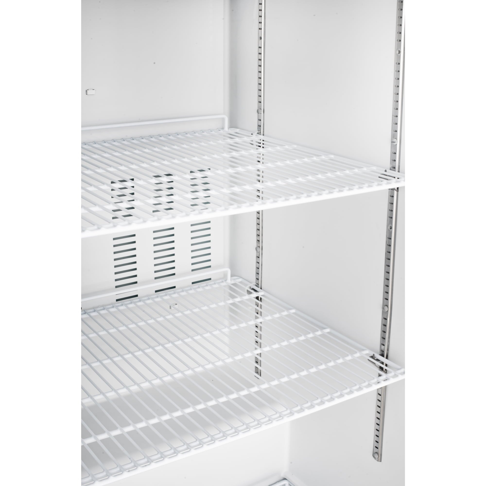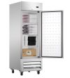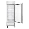 The glass door provides clear visibility, allowing for quick inventory checks and an attractive display of your products. Designed with efficiency in mind, the self-closing door helps maintain optimal temperature, while bright LED lighting illuminates the interior for easy access to items. The adjustable shelves offer customizable storage options, accommodating various food items and containers with ease.