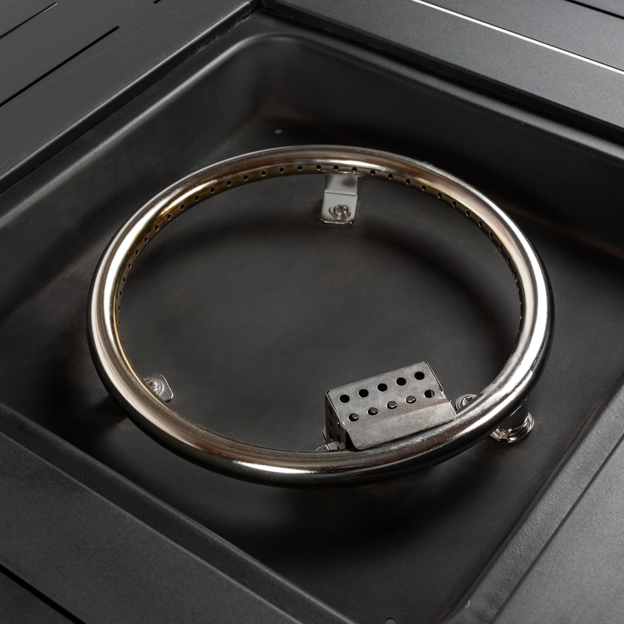 - This 27-inch outdoor gas fire pit table has one stainless steel burner that equals 40,000BTUs.