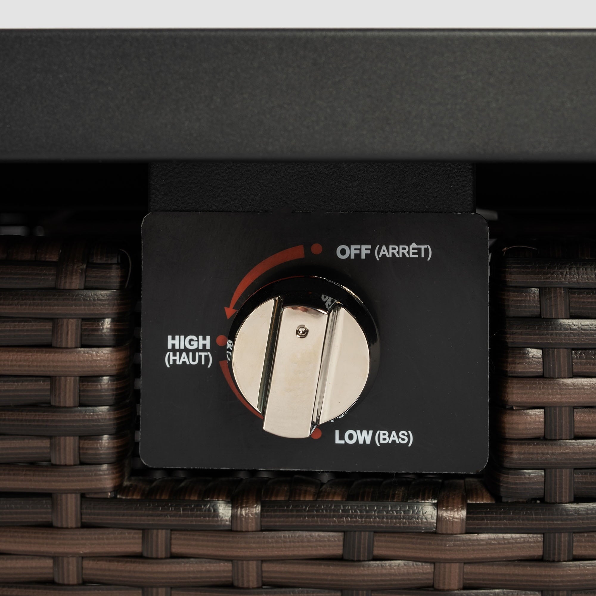 - This fire pit table is mainly made of powder-coated stainless steel and all-weather PE wicker, which is sturdy and durable for long time use.