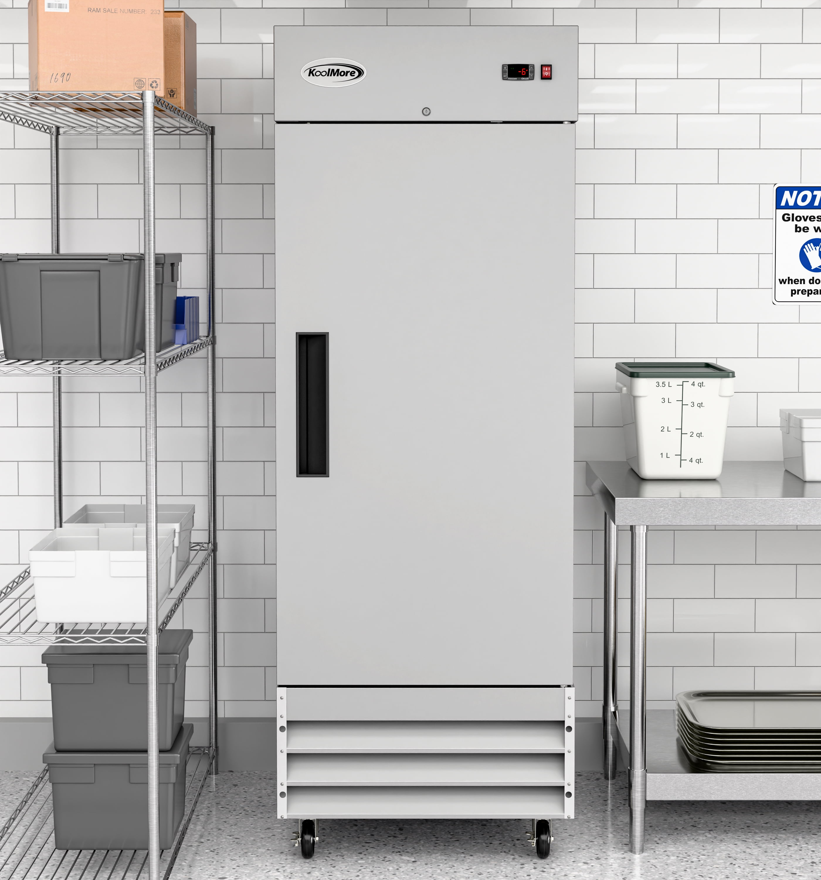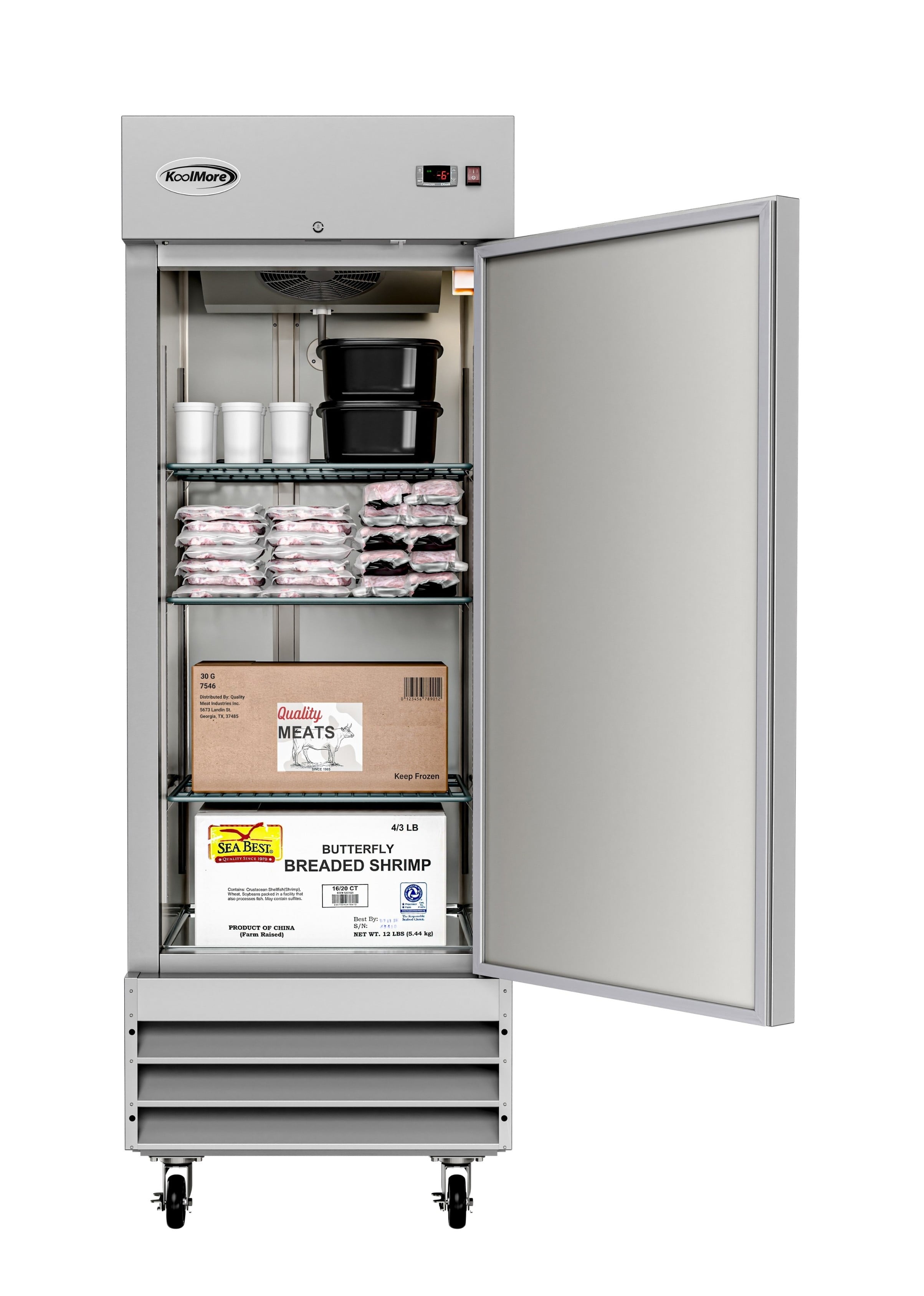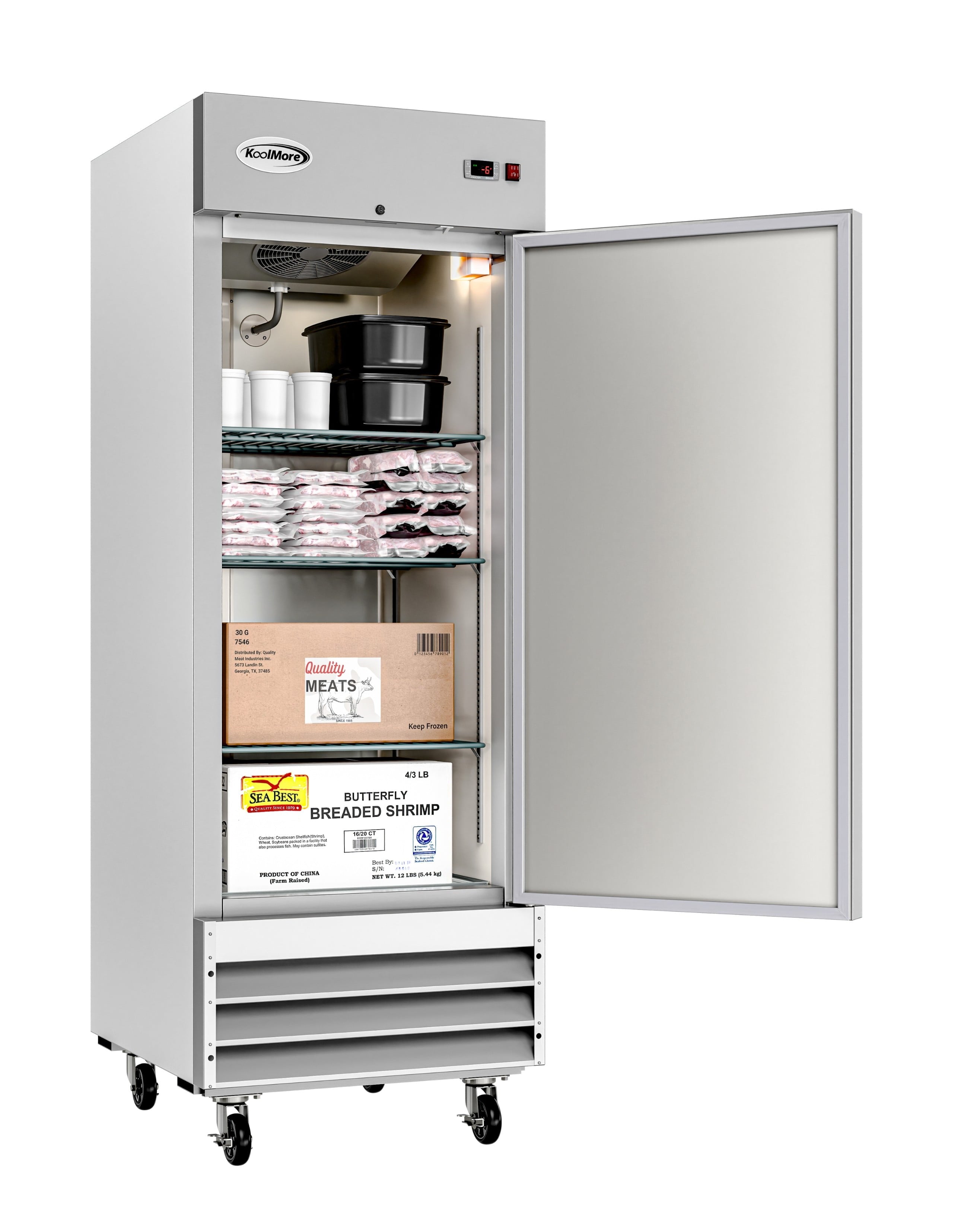 Your commercial kitchen deserves a cool, sleek, convenient freezer solution. The KoolMore Single Door Reach-In Commercial Freezer is made of gleaming stainless steel. A one-door ETL-certified Commercial Freezer to store your inventory and keep your product fresh and healthy.