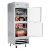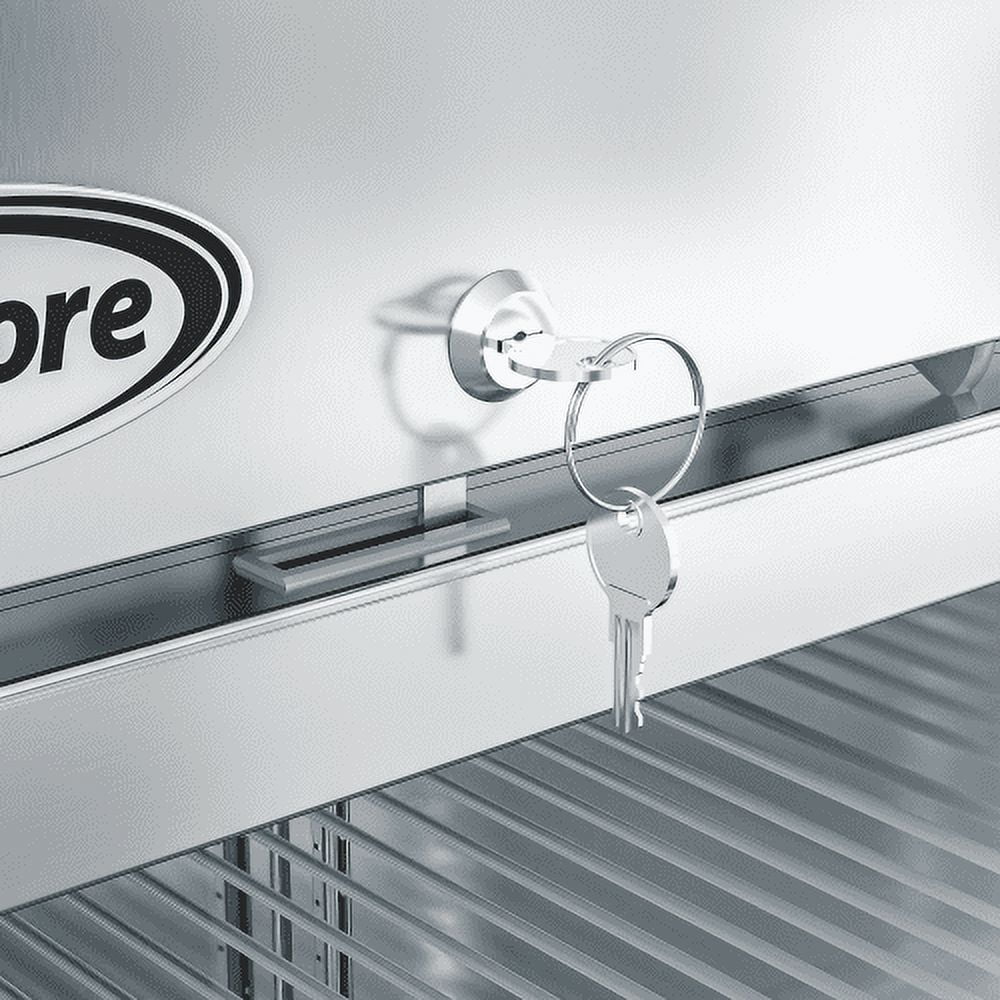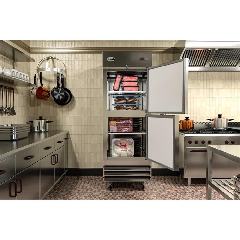 Ideal for restaurants, cafes, hotels, and commercial kitchens. A bottom-mounted compressor and raised bottom shelf make for convenient loading, unloading, and maintenance. Features recessed handles for easy access, a self-closing feature that ensures food remains frozen and fresh and three deep adjustable shelves coated in epoxy for maximum corrosion resistance.