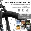 【29*2.125″ Tire】29*2.125″ Rubber mountain pattern tires with high friction. Anti-skid and wear-resistant with strong grip and puncture resistance for hillsides, gravel, city streets and trails.