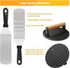 - Premium Quality Griddle Tools – Made of high quality stainless steel with fingerprint design plastic handle provides a firm and comfortable grip. Do not worry about your grill tools loosening, breaking or creaking. Hanging hole for easy storage. This high performance griddle spatula set is suitable for a variety of cooking purposes and is a must for Hibachi and electric Teppanyaki grills. Dishwasher safe.