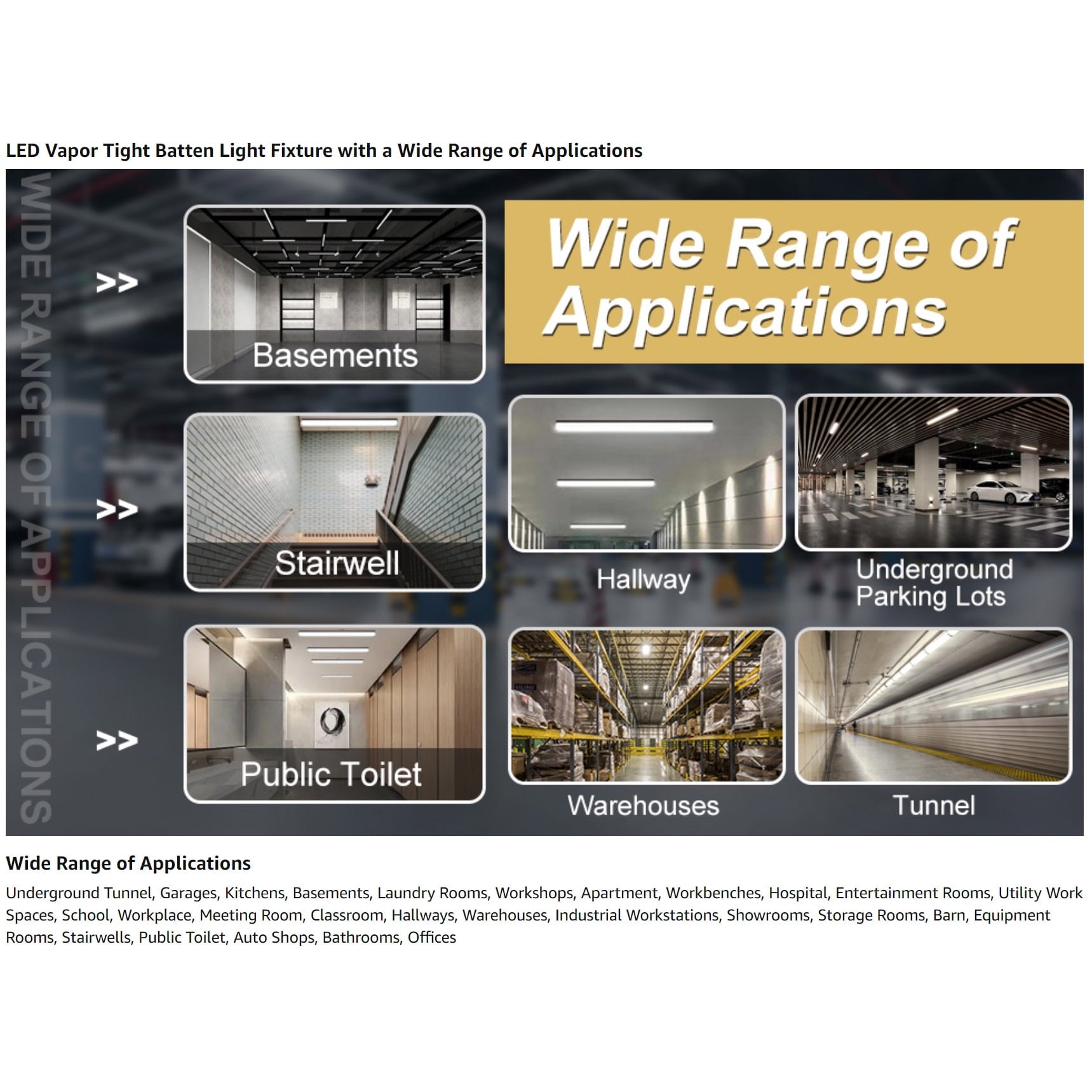 - 💡 【High Performance & Glare-Free】 Walrusled 24” led stairwell wraparound vapor tight batten light fixture base made of premium polycarbonate, excellent moistureproof, special process width milky PC cover to avoid yellowing and large luminous area coverage, makes the light more uniform and comfortable, no dazzling light to eyes.