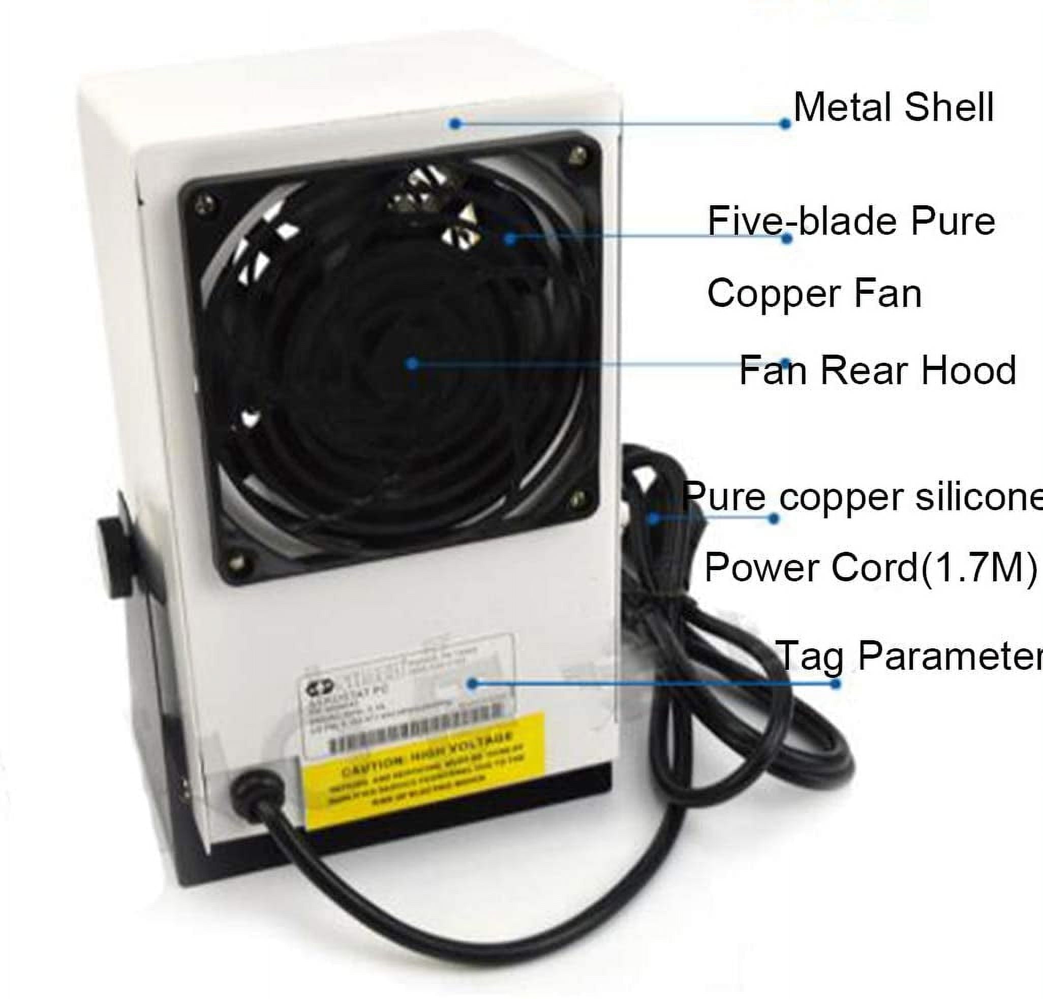 • Small, lightweight and portable ionizing air blower, convenient to move and install this static eliminator.