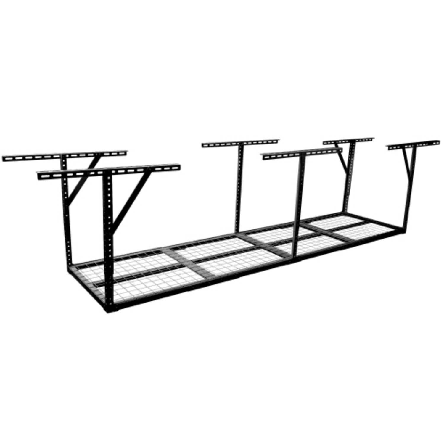 RECLAIM YOUR GARAGE:Use garage ceiling space to store seasonal and unused items. 22” to 40” ceiling dropdown provides up to 52 cu. ft. of storage. Dimensions: 96 in. L x 24 in. W x 22-40 in. H.(Hooks not included)