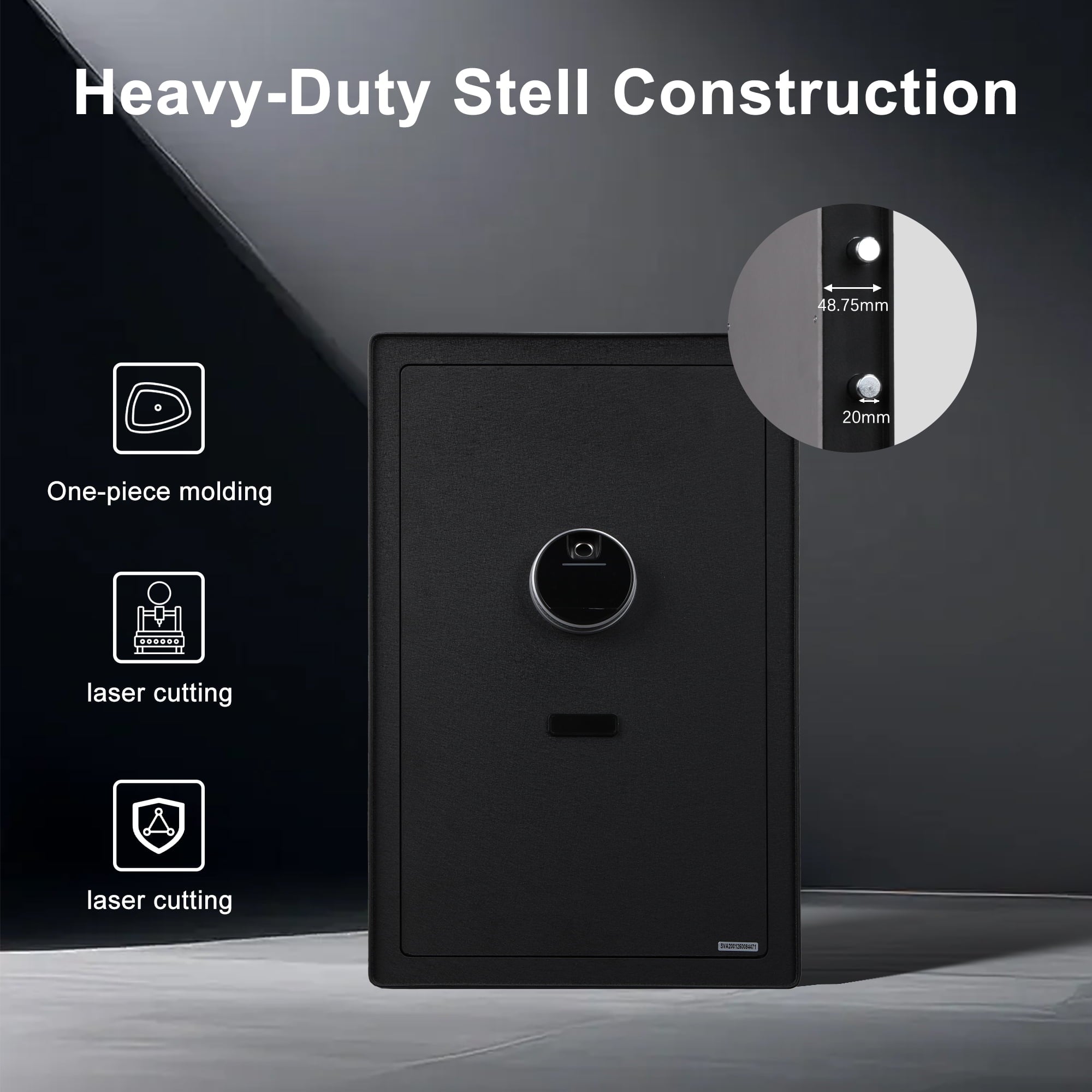 • 【Sturdy and Durable】The safe box is constructed with heavy-duty thick steel plates, a 75 mm extra-thick alloy pry-resistant door, and 7×28 mm high-strength solid-core lock bolts with anti-pry insert slots, ensuring reliable security for your valuables. Weighing 86 pounds, it is extremely difficult to move