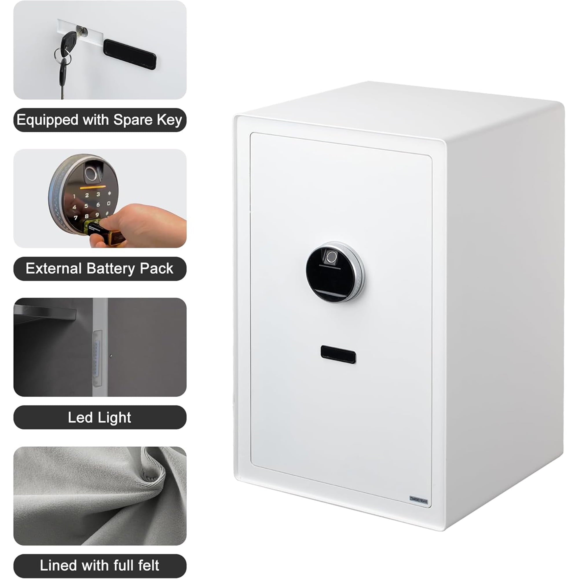 Home Safes 3.0 Cu.Ft Large Home Safe,with Fireproof Waterproof Bag, Heavy Duty Digital Security Safe, Built-In Drawer and Removable Shelf for Storing Valuables (White, Fingerprint)