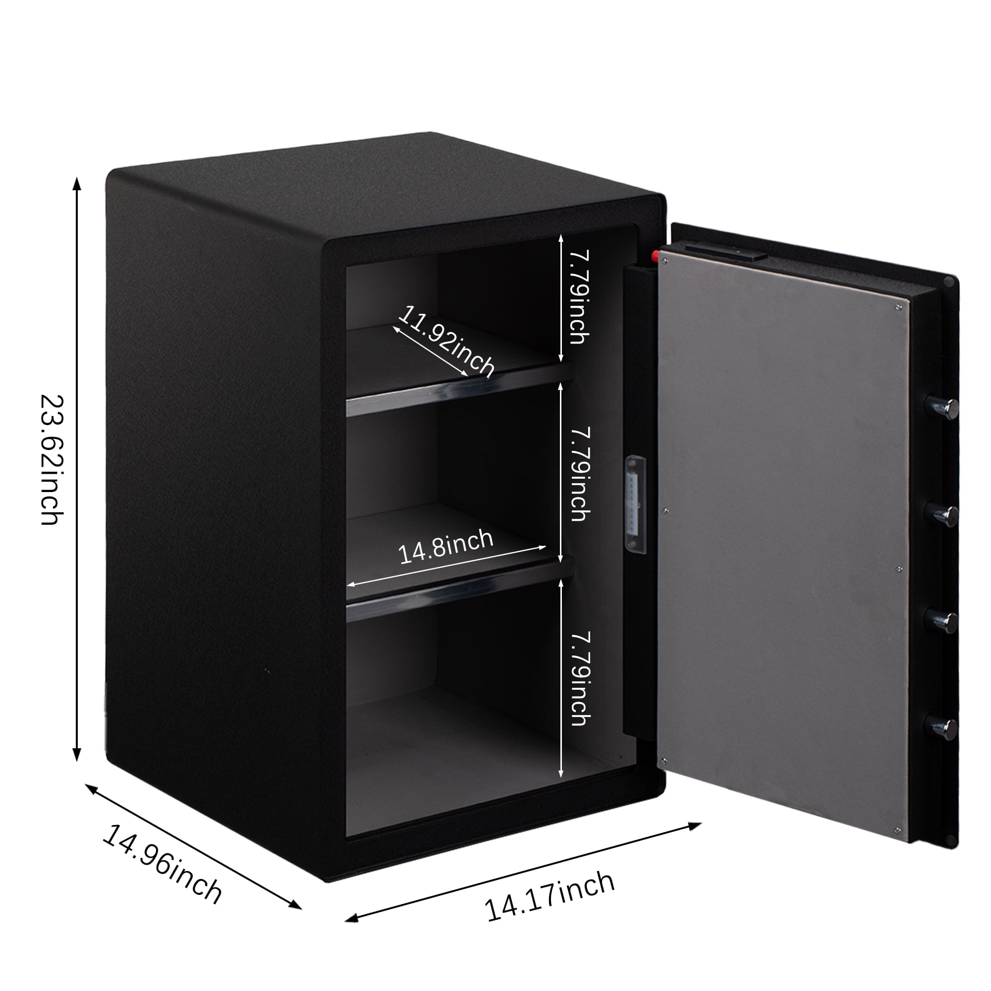 • 【Large Capacity】Exterior dimensions: 18.5” (D) × 17.7” (W) × 25.2” (H),Three roomy shelves, each measuring 14.5” (W) × 11.9” (D) × 7.8” (H),Organized storage for cash, handguns, medications, bulky files, laptops, keys, passports, jewelry, and more