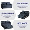 - This versatile piece functions as a sofa, loveseat, and sleeper bed.