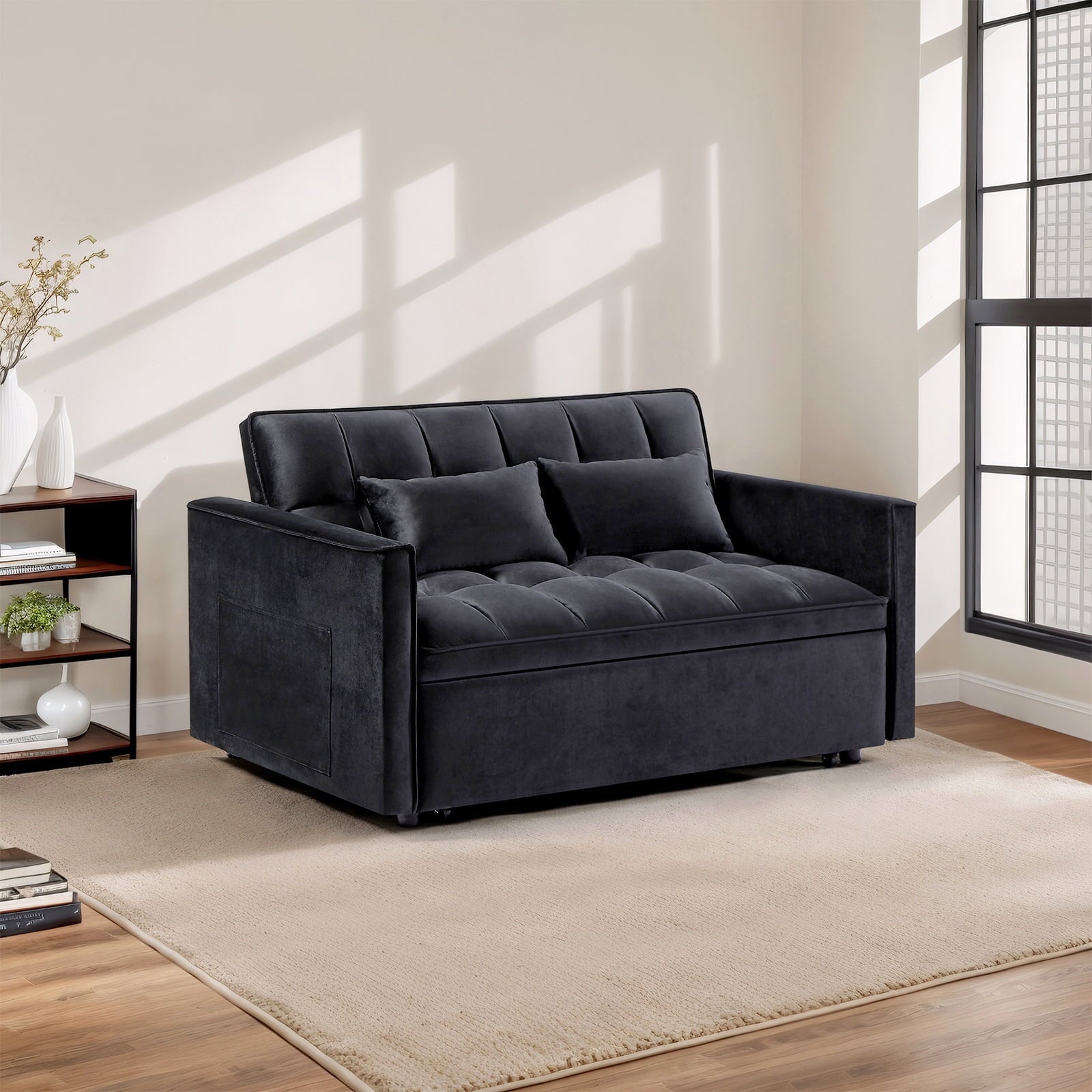 - Includes a pull-out bed mechanism for easy conversion.