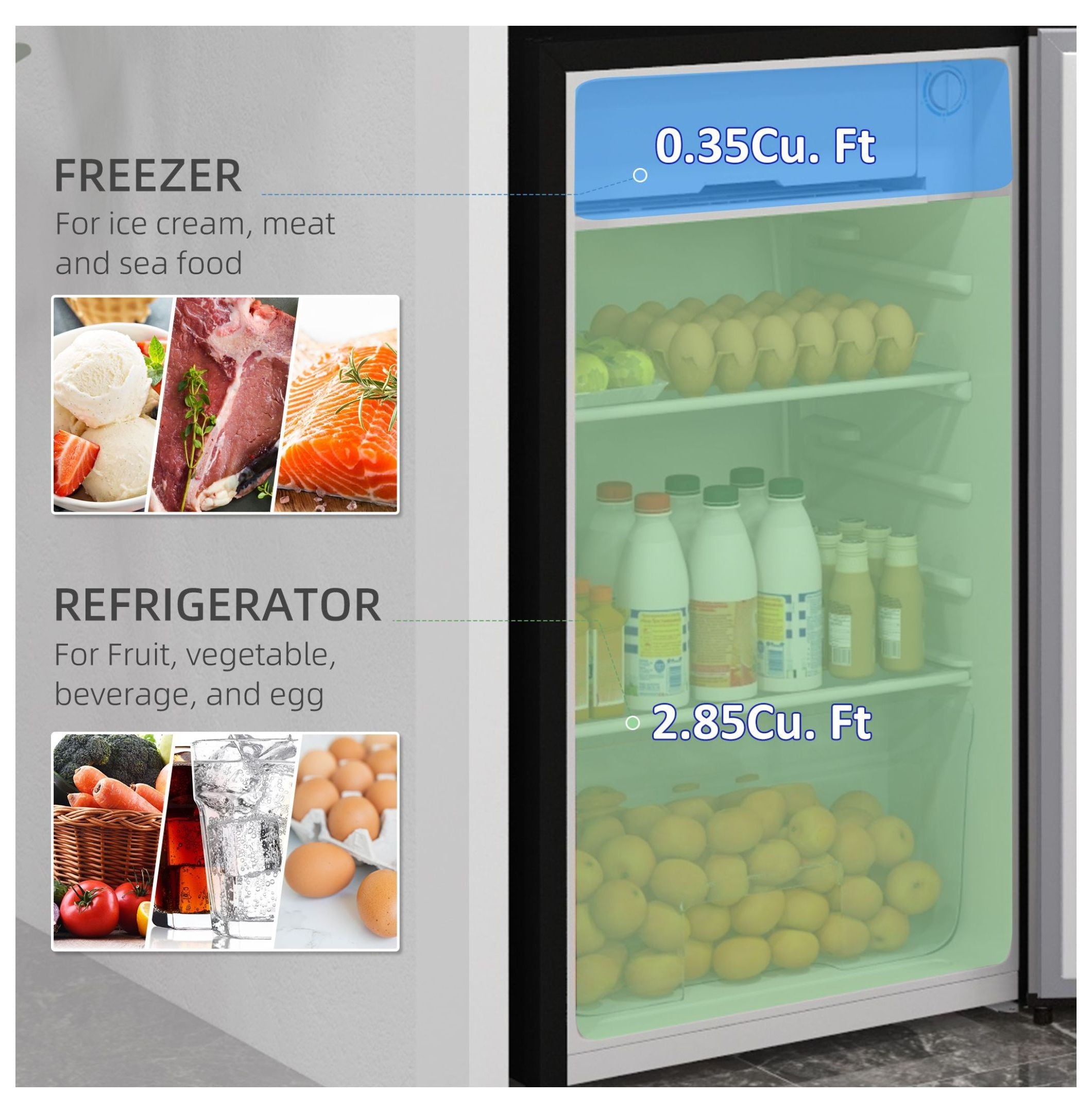 - 【Compact & Convenient】: This 3.2 Cu.Ft mini fridge is ideal for dorms, apartments, bedrooms, offices, or motor homes; its compact size (18.75″ W x 17.5″ D x 33″ H) fits easily into smaller spaces without compromising functionality; total capacity is 3.2 Cu.Ft with a 0.35 Cu.Ft freezer