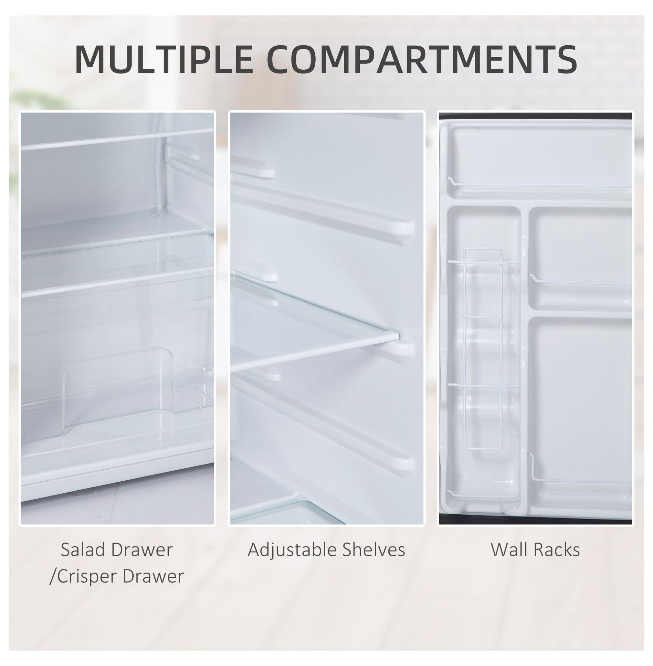 - 【Organized Storage】: Features a 0.35 Cu.Ft freezer compartment, two adjustable shelves, a crisper drawer, and door storage; providing ample space for snacks, drinks, and fresh produce; the crisper drawer (15.5″ W x 6.75″ D x 5″ H) keeps fruits and vegetables fresh