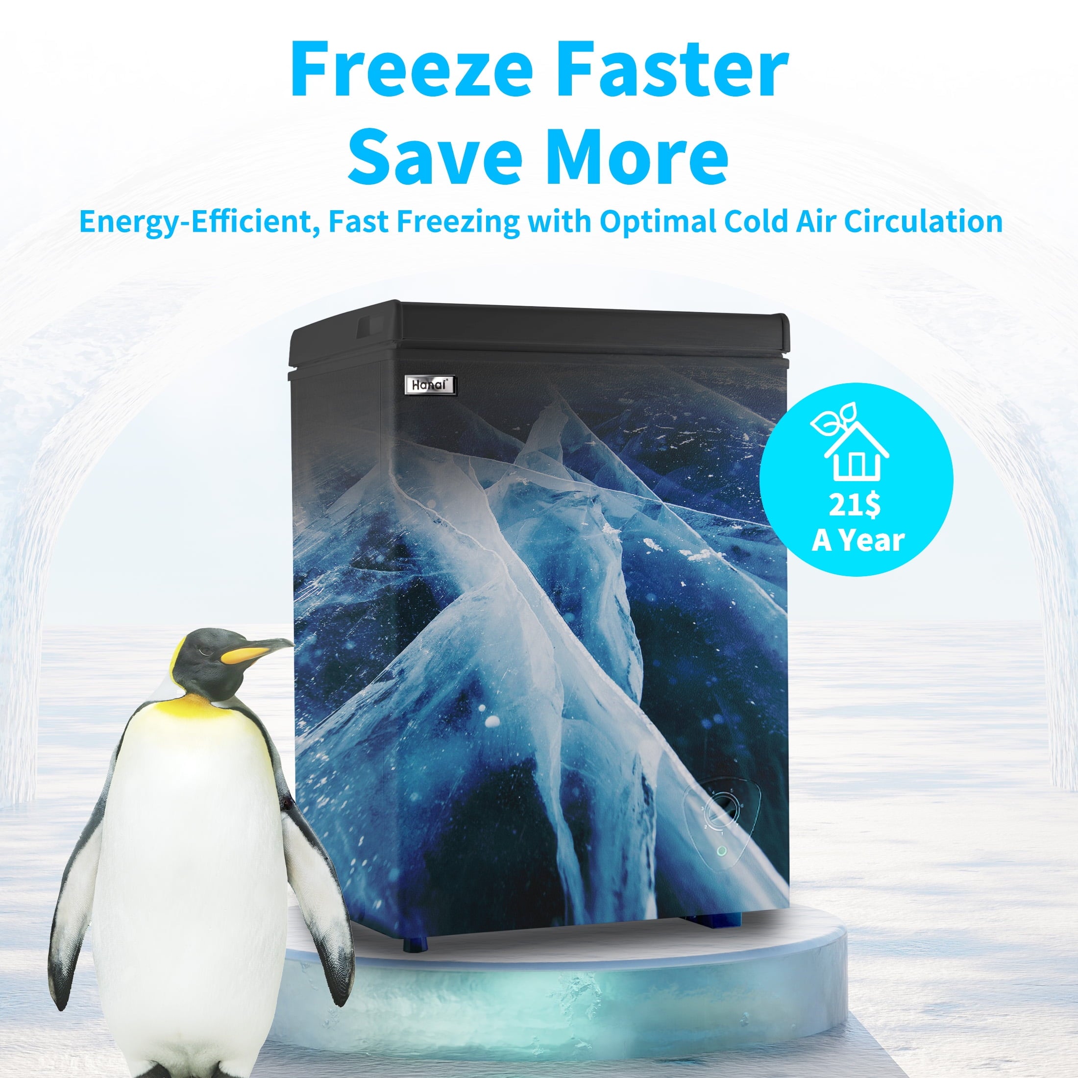- Equipped with an R600a high-efficiency,low-energy-consumption compressor,this freezer cools quickly and efficiently.It consumes only 0.56 kWh of electricity per day.Plus,the silent compressor ensures a peaceful environment for you and your family.