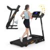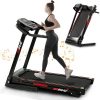 - 【CONVENIENT CONSOLE & LED DISPLAY】The electric treadmill comes with a convenient console that allows you to switch the treadmill on and off with on-screen shortcuts, as well as adjust your speed.The LED display displays the time, speed, heart rate, distance and calories of your running
