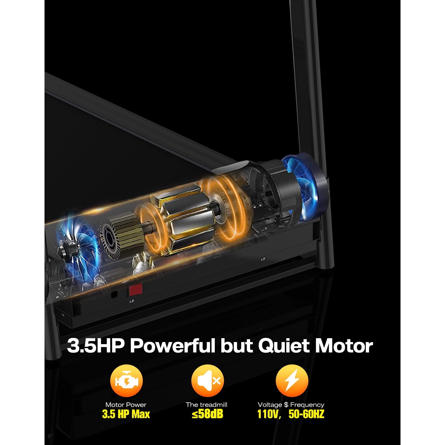 This folding treadmill was powered by a 3.5 horsepower motor that supports speeds from 0.8-10KM/H .Reduce impact on your joints as you walk or run when you strike against the shock-absorption-equipped running deck, compared to exercising on concrete or other hard surfaces.