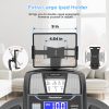 • 【Full-Featured Console & Entertainment】 Stay motivated with a blue backlit LCD tracking your time, speed, distance, calories, incline, and heart rate at a glance. Handrail controls give instant speed and start/stop adjustments for smooth jogging walking treadmill sessions. Enjoy HiFi Bluetooth MP3 speakers, a USB charging port, side baskets, and a 360° adjustable device holder—making your treadmill experience as enjoyable as it is effective, whether for treadmills for home fitness or caminadoras para hacer ejercicio.