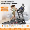 3.75HP Treadmill 300lb Capacity, Incline Folding Treadmill, 64+7 Smart Program, 7.5MPH Speed, Smart APP Control, Treadmill for Home Jogging Walking w/ HiFi Speakers, Free Knee Pads