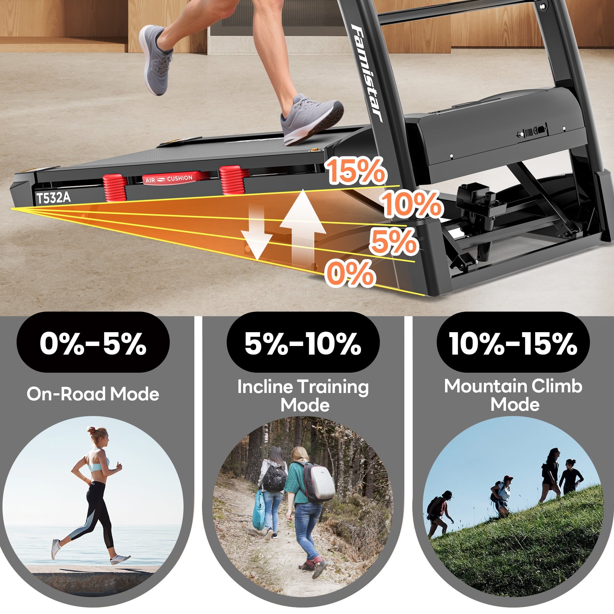 Incline: 3 Levels Manual Incline for Various Exercise Intensities