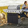 - UPGRADED MATERIALS: The Gas Grill features stainless steel construction for added style and durability. The grill is made of durable, easy-to-clean porcelain-enameled cast iron material that helps prevent rusting and cracking. The flame regulator and stainless steel grill help dissipate heat evenly over the entire cooking surface. The stainless steel control panel is painted to withstand 600-degree temperatures, heats quickly and evenly, and ignites the burners instantly and reliably.