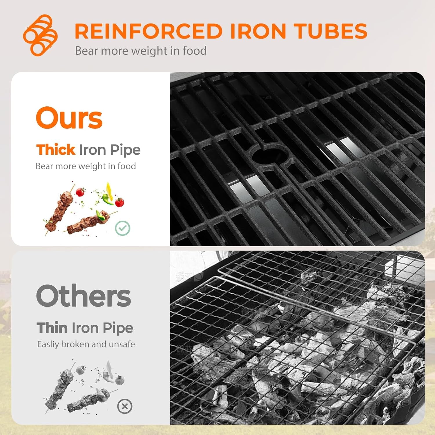 - Our gas grill is made of 430 stainless steel for excellent heat resistance; Rust-resistant coating for long life.