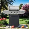 - SPACIOUS COOKING AREA: 379.7 square inches of cooking area is perfect for family use, with 275 square inches of main cooking area plus 104.7 square inches of warming racks, the ideal size for a barbecue party or everyday family grilling. The propane gas grill has a side countertop for easy maneuverability and storage, and a side burner suitable for warming up sauces and side dishes to complement grilled food.
