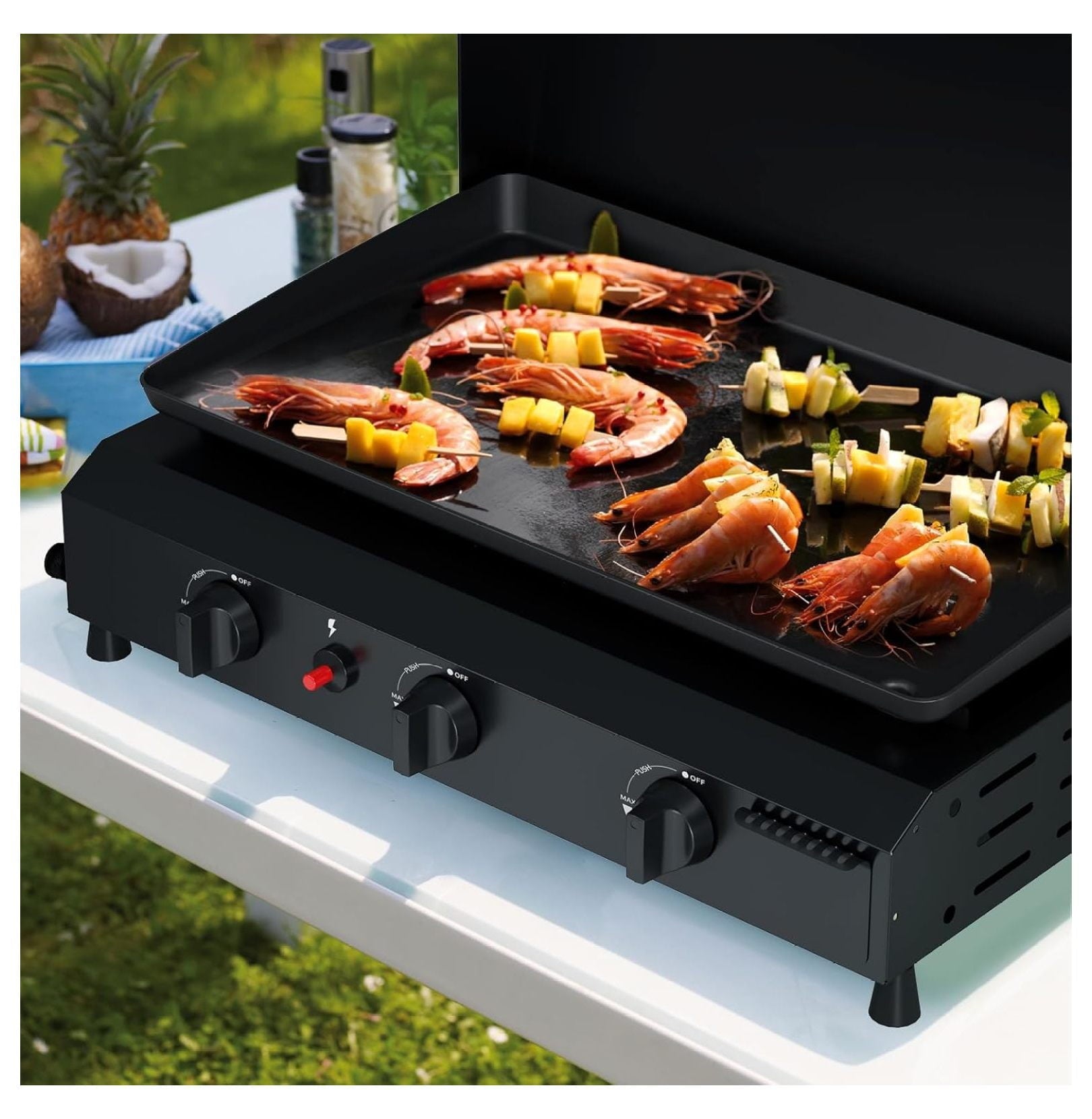 - 【Powerful Heating System】: Equipped with 3 individual stainless steel burners delivering a total of 45,000 BTUs for fast and even heating; integrated piezo ignition system allows for precise temperature control; ideal for searing, frying, and simmering various foods.