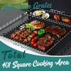- Spacious Cooking Area: Enjoy ample grilling capacity with double-sized wire enamel cooking grids (6.9×17.3 in + 8.9×17.3 in) plus a stainless-steel flat plate (17.7×17.5 in + 16.5×4.3 in). Cook multiple burgers, steaks, or vegetables simultaneously with ease, perfect for family gatherings.